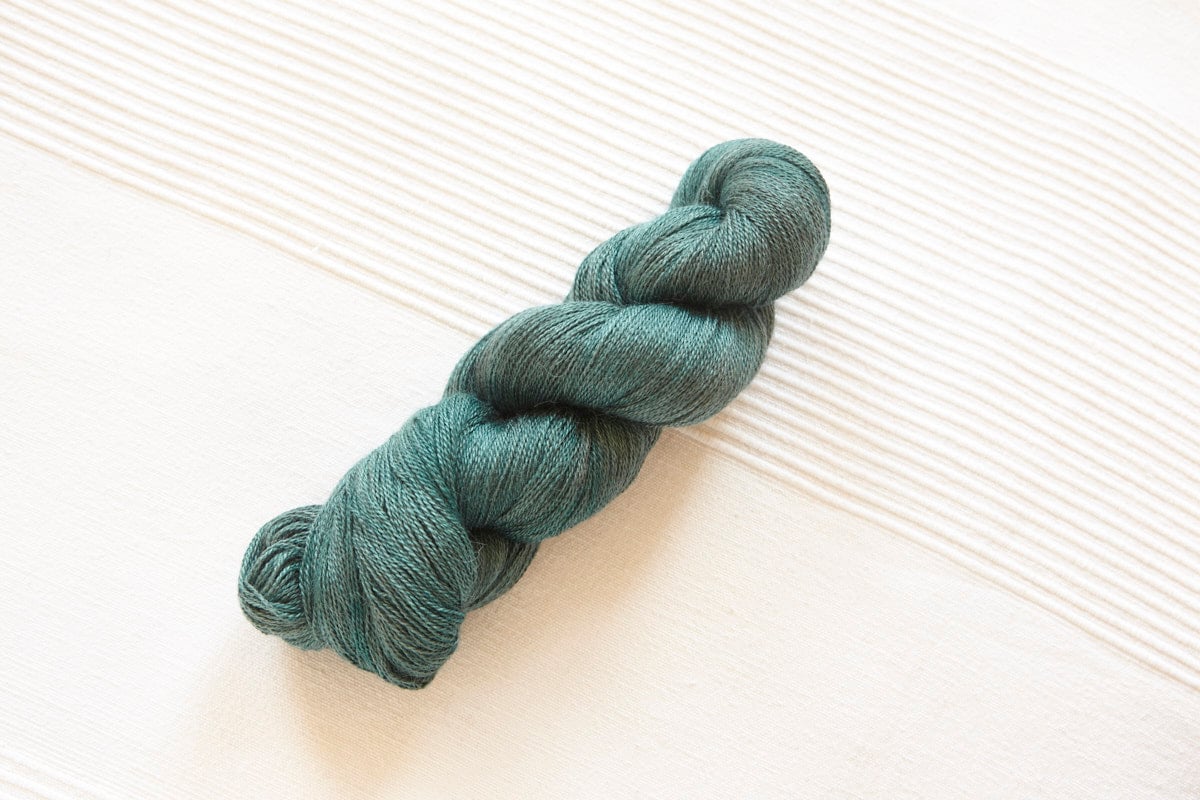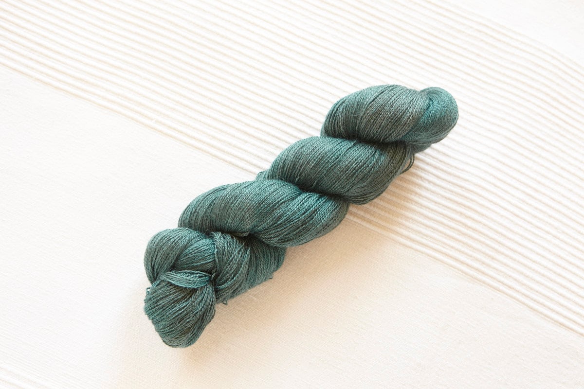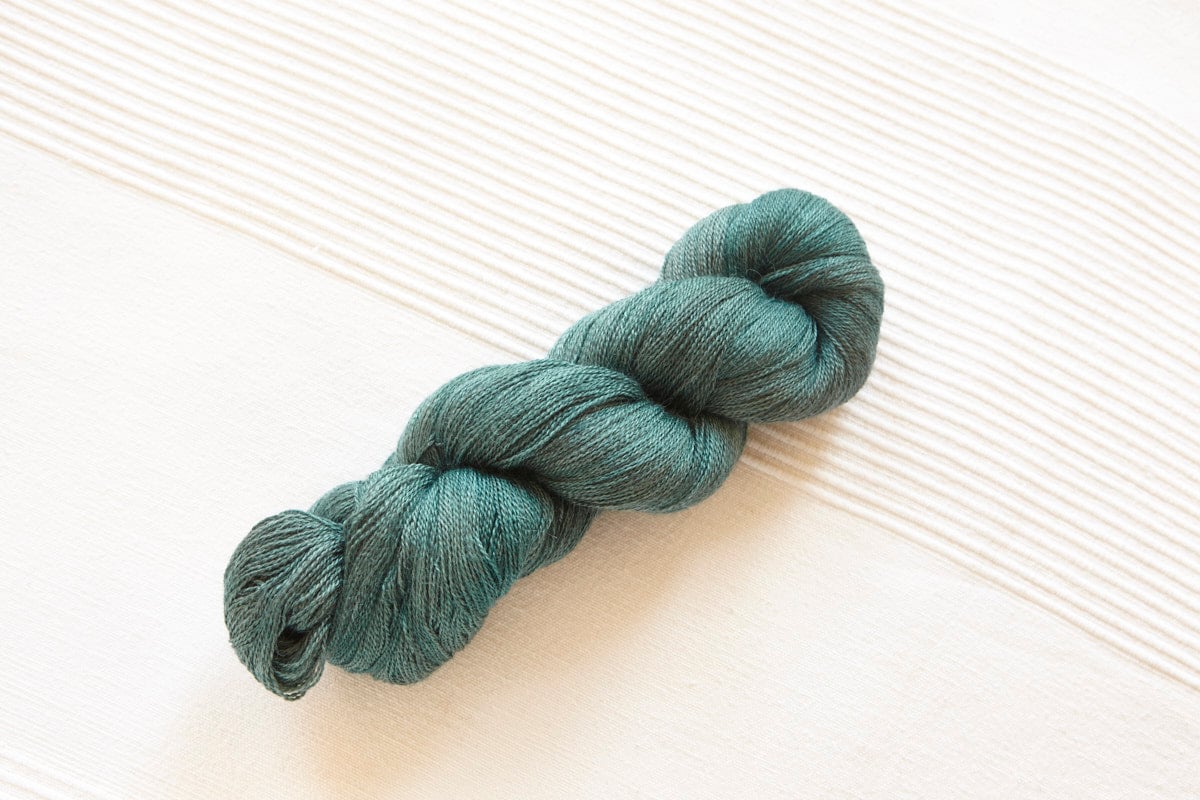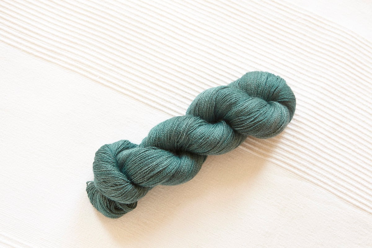 Yarn base description: Classic 2-ply Lace yarn (with Baby Alpaca and Mulberry Silk, non-superwash), soft and silky, with a gentle shine. This yarn has a lot of yardage and creates a lovely plump fabric. The knitted fabric create a soft stitch definition and has a slight halo due to the Alpaca content. This is great for lightweight and lacy accessories such as shawls, scarves, stoles and cowls, especially when worked at a looser gauge to enhance the yarn-overs. Hand wash only.
