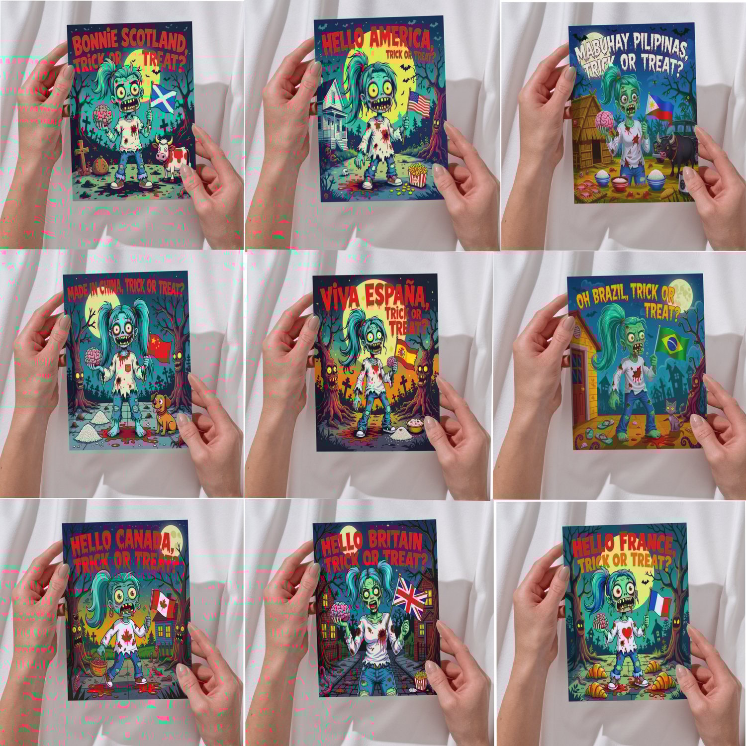 Zombie Halloween Poster Bundle |Zombie in Nations|Digital Download (4961 Γ 7016 px at 300 DPI)