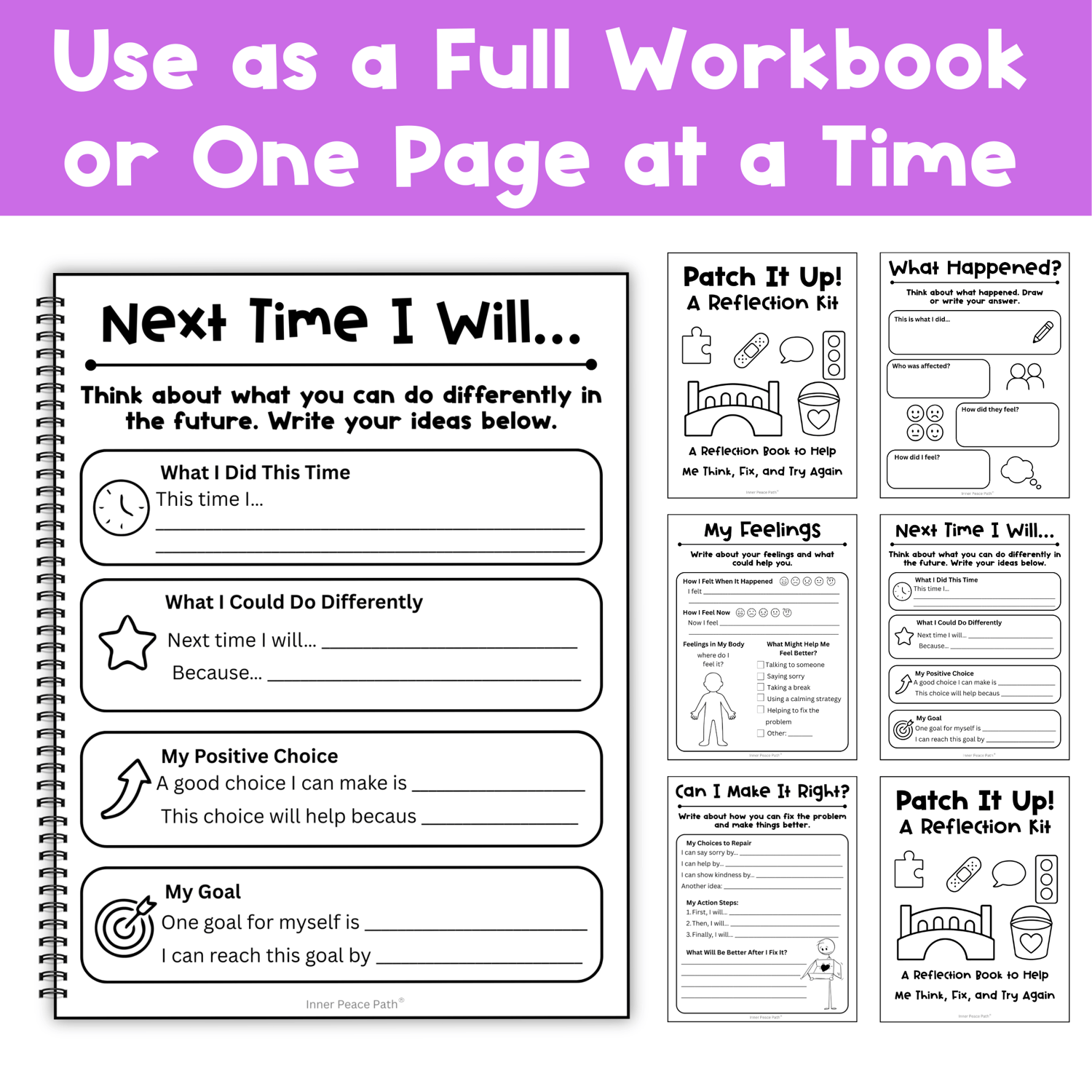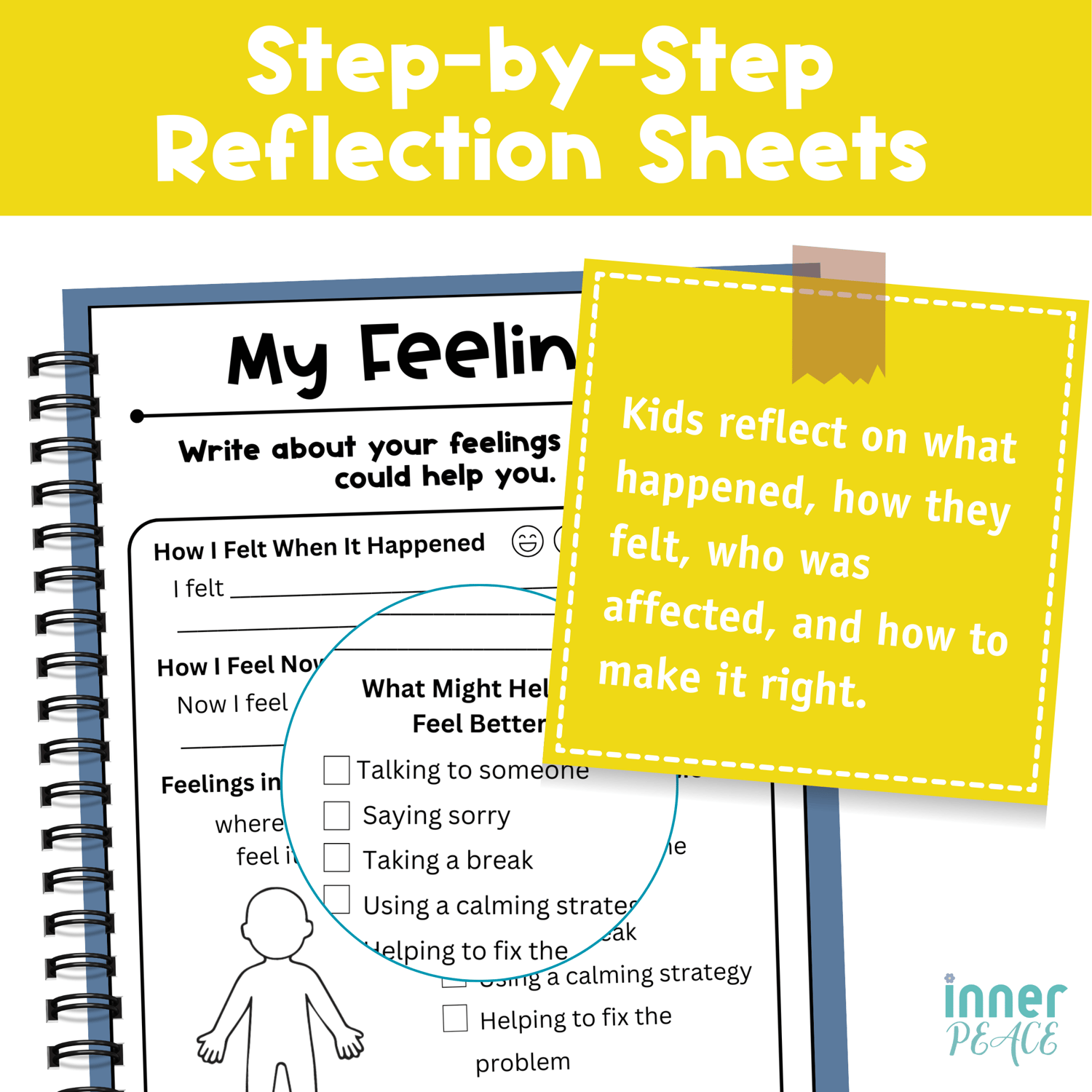 Perfect for restorative justice practices, classroom management, counseling, and behavior support, this kit provides simple yet meaningful writing prompts that teachers can use as a complete workbook or as stand-alone reflection sheets.