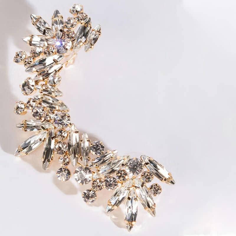 Designed to wrap gently around the ear without piercing, it adjusts comfortably while crystal details catch the light with every movement.