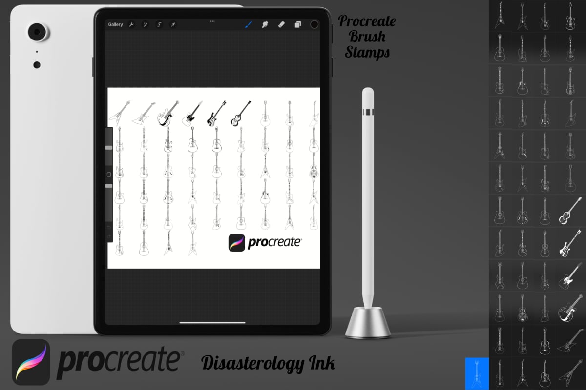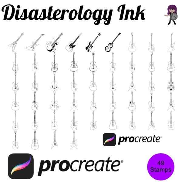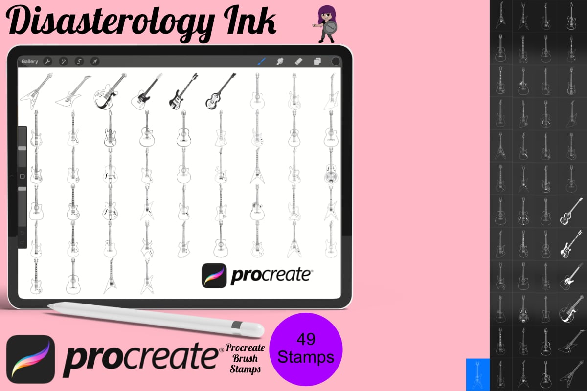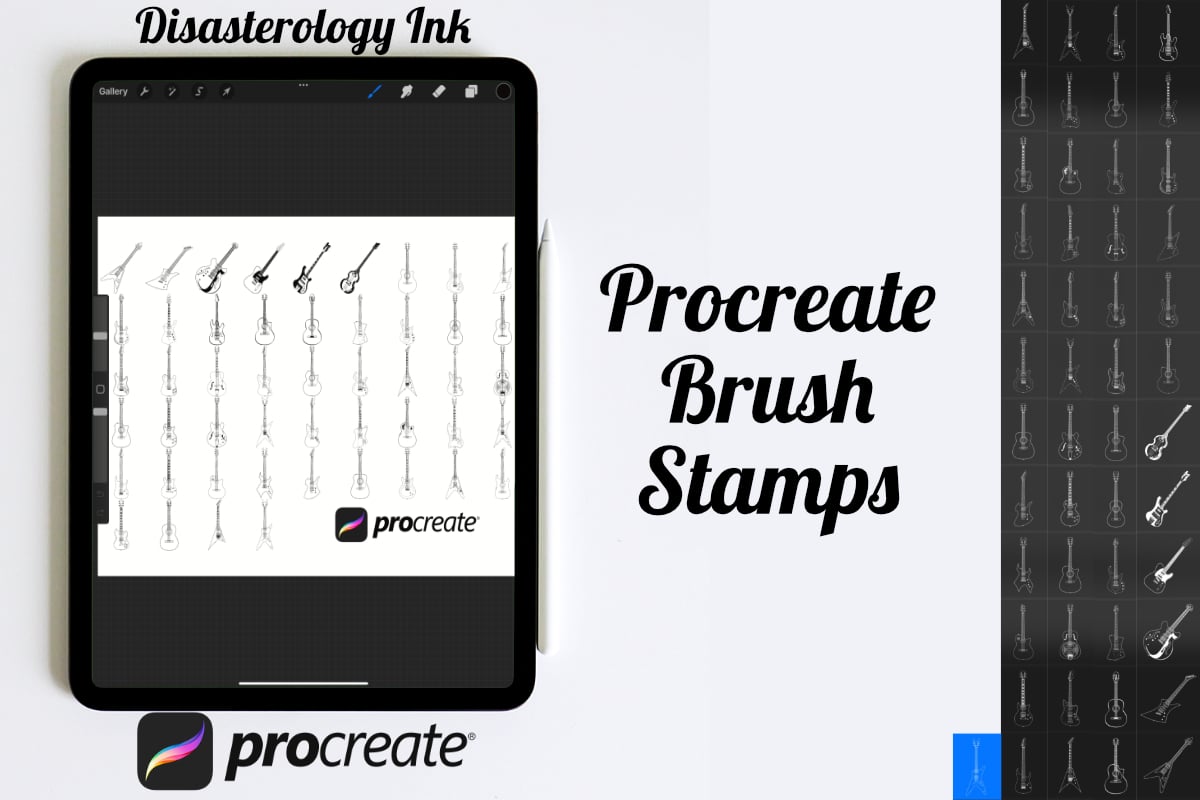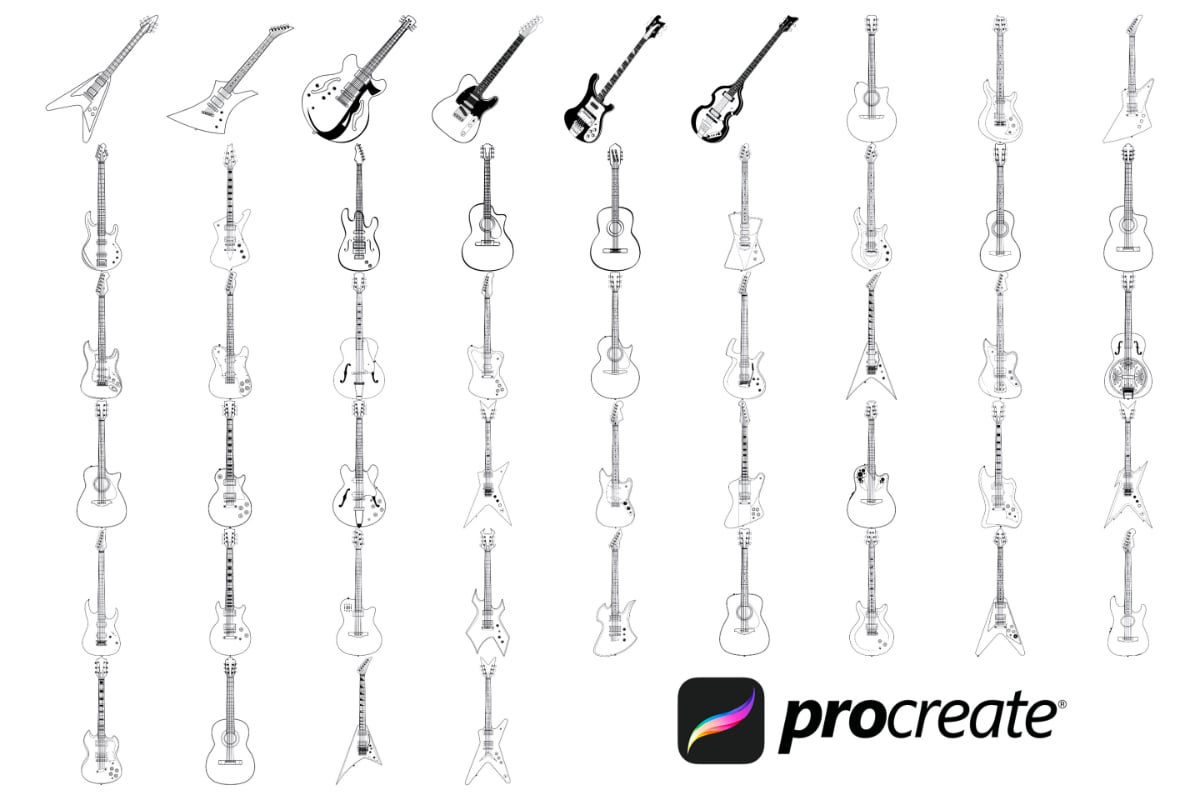 Guitars Set 1 Procreate Brush Stamps, 49 Guitars
