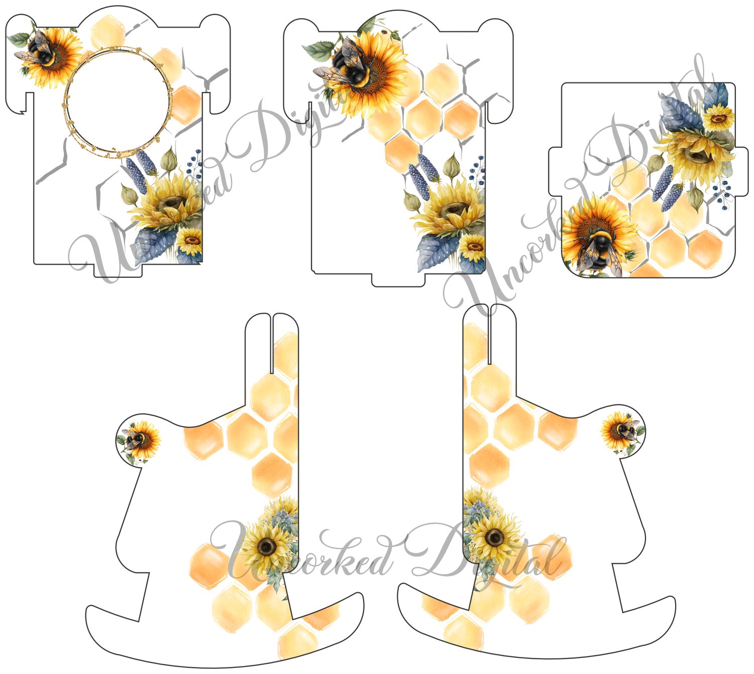 Beautiful Sunflower and bee memorial design to fit the heart, base and chair/s blanks from Woodform Crafts.