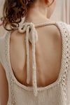 The neckline is finished with I-cords which are mostly worked seamlessly. Finally, we pick up stitches from the back to create an I-cord bow.