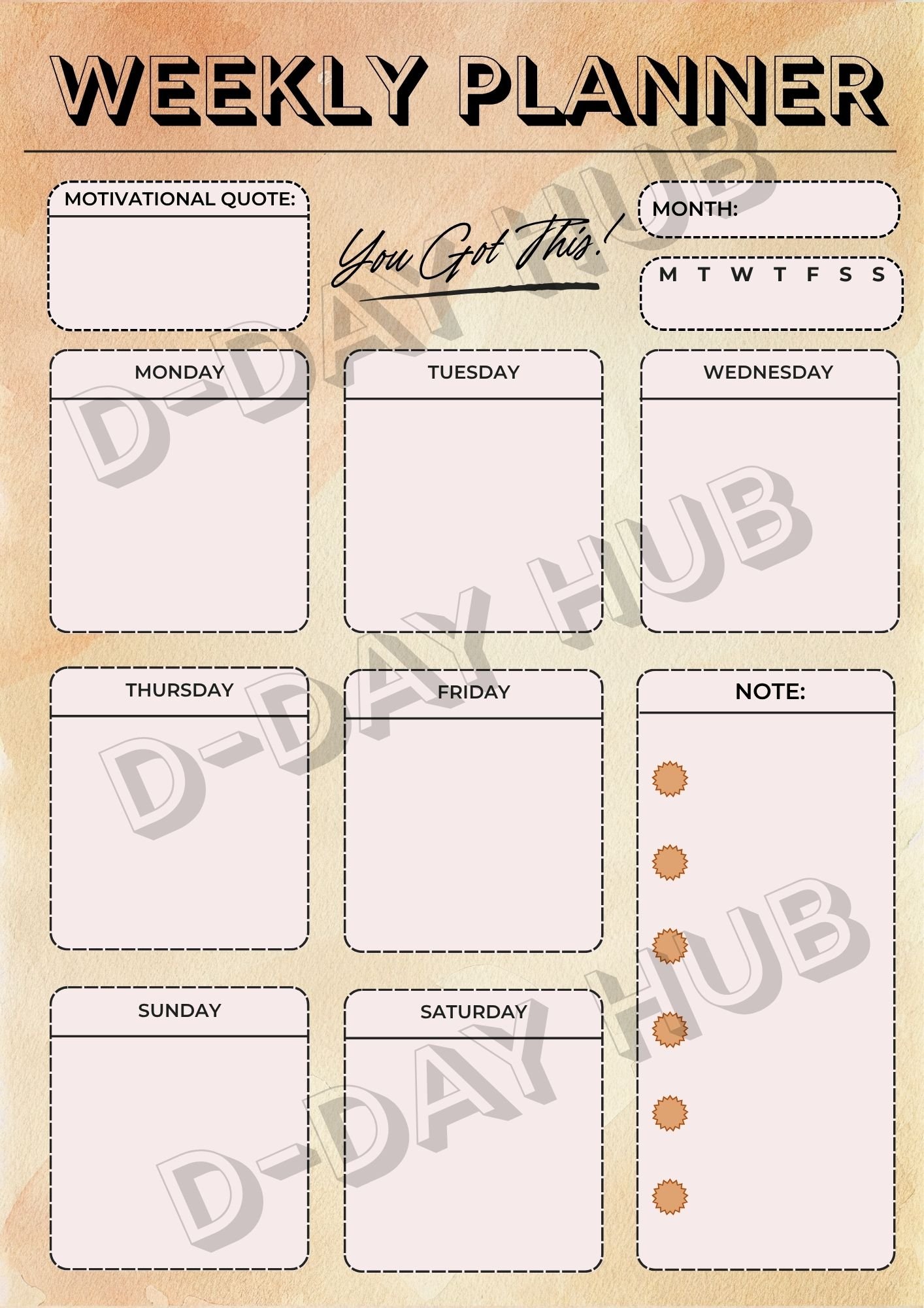 This Weekly Planner Coffee Vibe will keep you organized with your busy schedule. The planner can be used as PDF or on your note taking apps. Once downloaded, you’ll receive the product without the watermark.