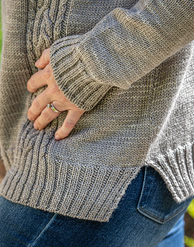 Shown in Size 3 with 12¾”/32 cm positive ease.