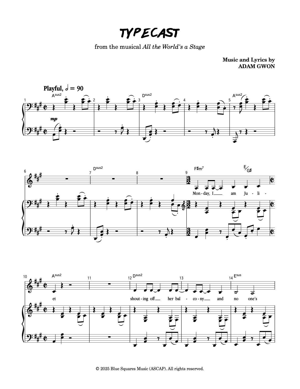 Piano/Vocal sheet music for "Typecast" from All the World's a Stage.