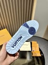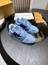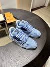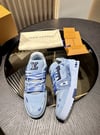 The Louis Vuitton LV Trainer Green Monogram Denim sneakers combine modern edge with classic luxury, making them a standout addition to any wardrobe. Crafted from green monogram denim, these trainers feature a fresh take on the iconic LV motif, seamlessly blending texture and color. The premium denim upper is contrasted by smooth leather accents, adding dimension and style. With a padded collar and cushioned insole, these sneakers are as comfortable as they are chic. The durable rubber outsole provides grip and stability, making them perfect for both city strolls and high-fashion looks. These LV Trainers are a unique, vibrant expression of Louis Vuitton's signature style.