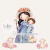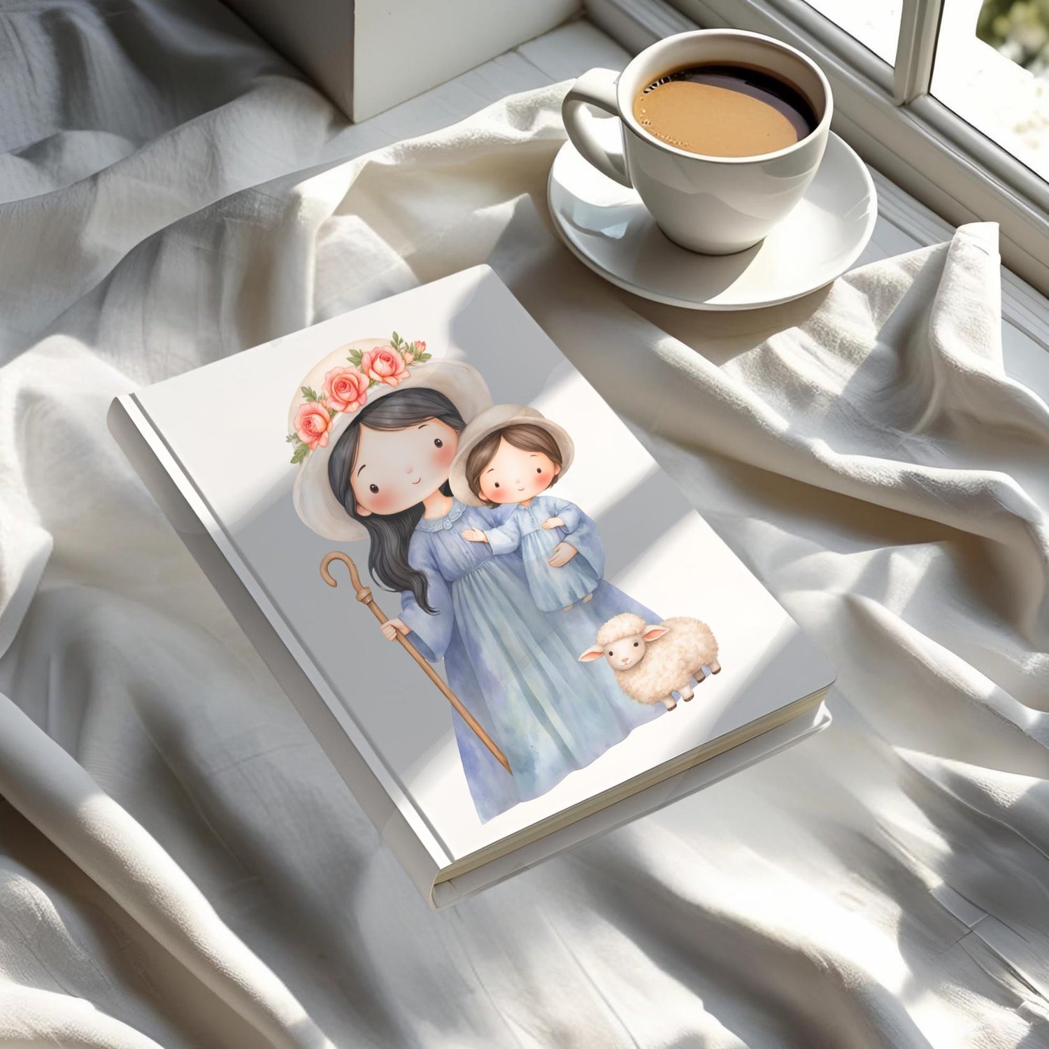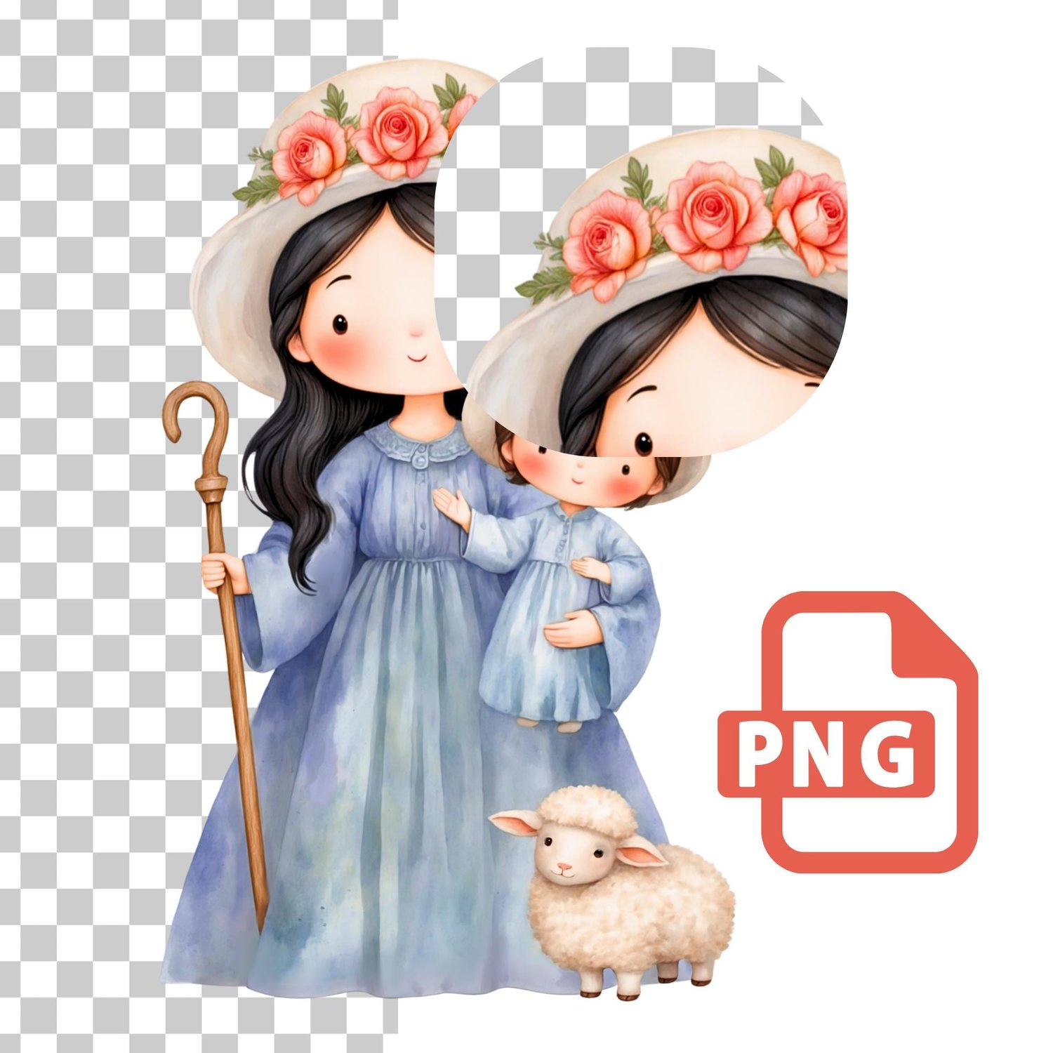 • 1x Ilustración principal de Divina Pastora. Una imagen completa del personaje en un estilo dulce y moderno. Ideal para invitaciones, estampitas, posters, y más.