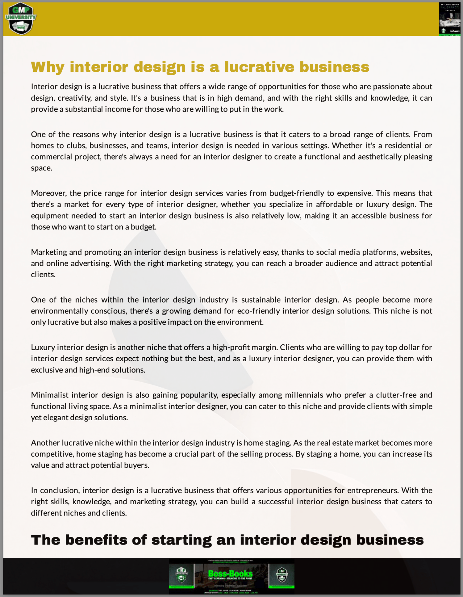 Interior Design Business - Signature Pro - With Audiobook / Mobile QR Codes / 10 Free A.I Tools / 25 Grant List / 5 Free A.I Website Builders & More