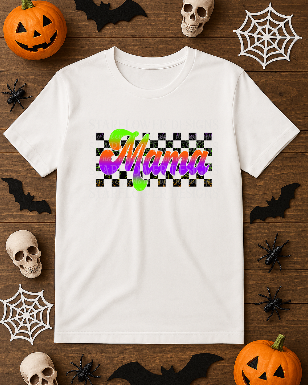 Halloween Webs & Neon Checkered Mama; PNG DIGITAL FILE ONLY