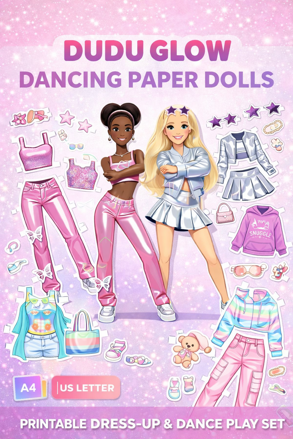 Dudu Glow Dancing Paper Dolls – Cut-Out Fashion, Dance & Outfit Fun (Printable PDF)