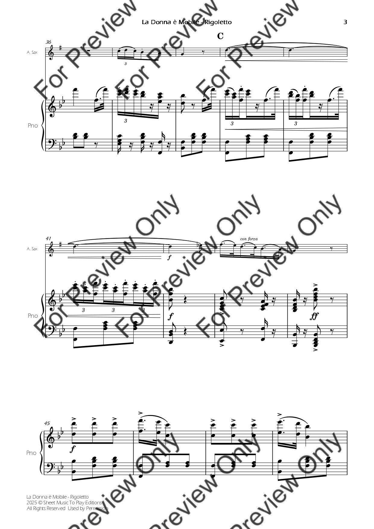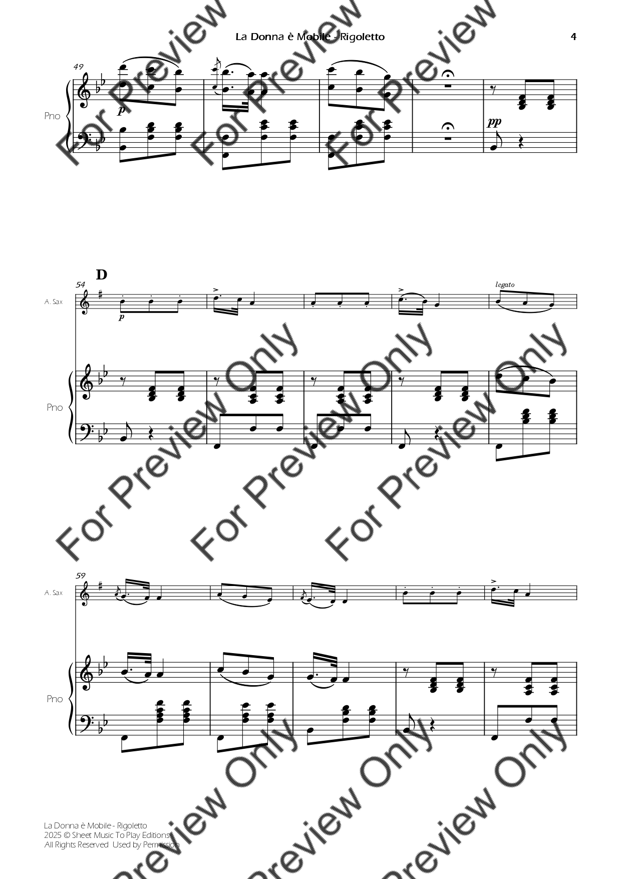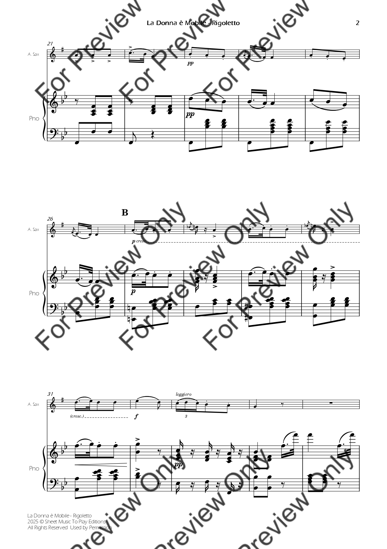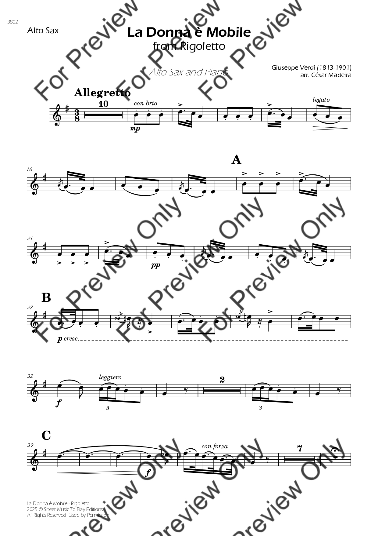 La Donna è Mobile from Rigoletto. Arrangement for Alto Saxophone and Piano. With Full Score and Individual Parts. Enjoy it!