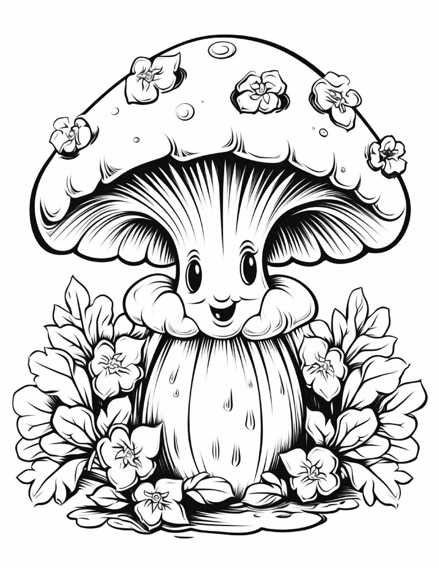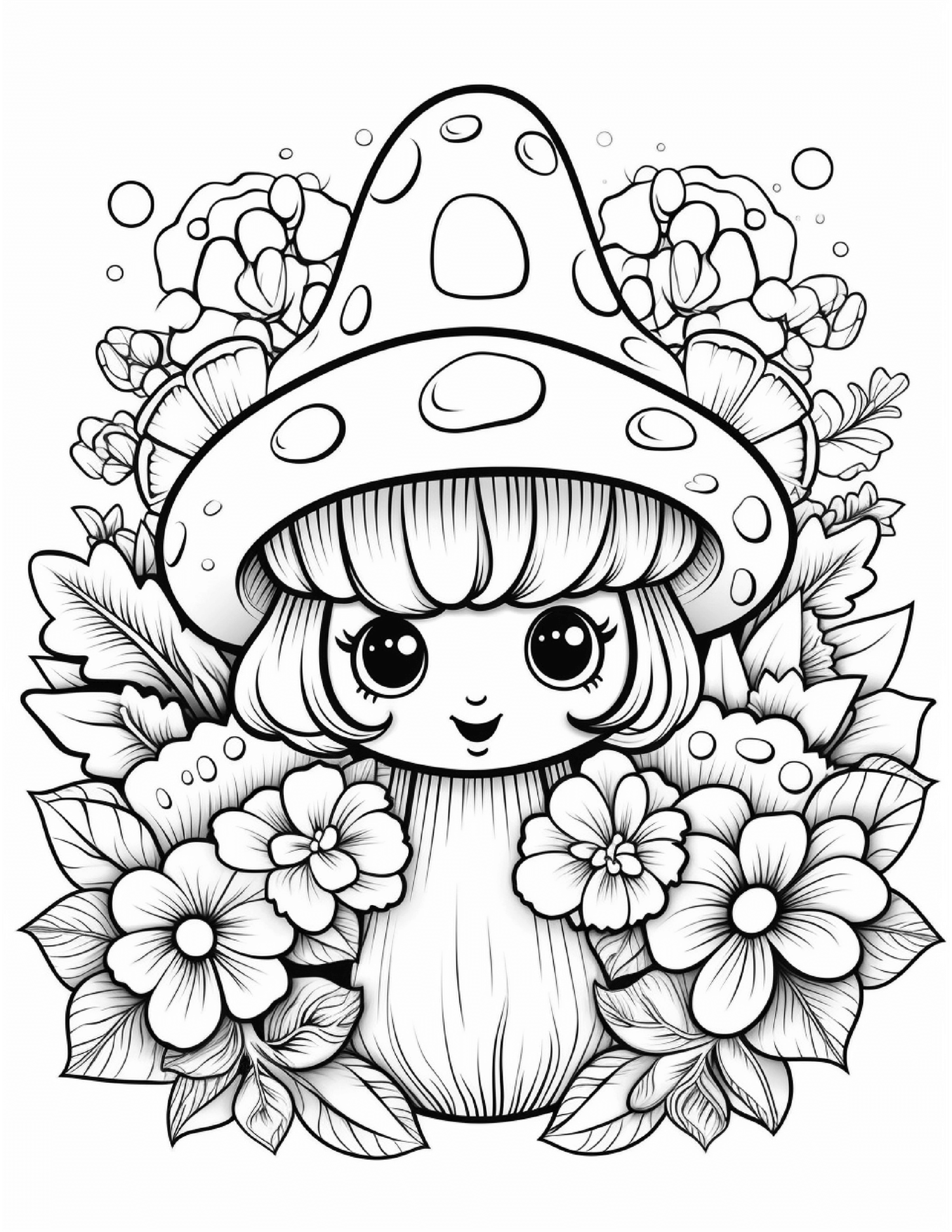 Discover the joy of coloring as you explore detailed depictions of beautiful and cute kawaii mushrooms.