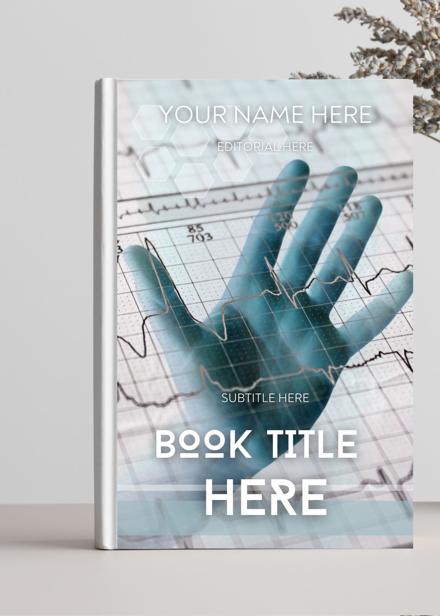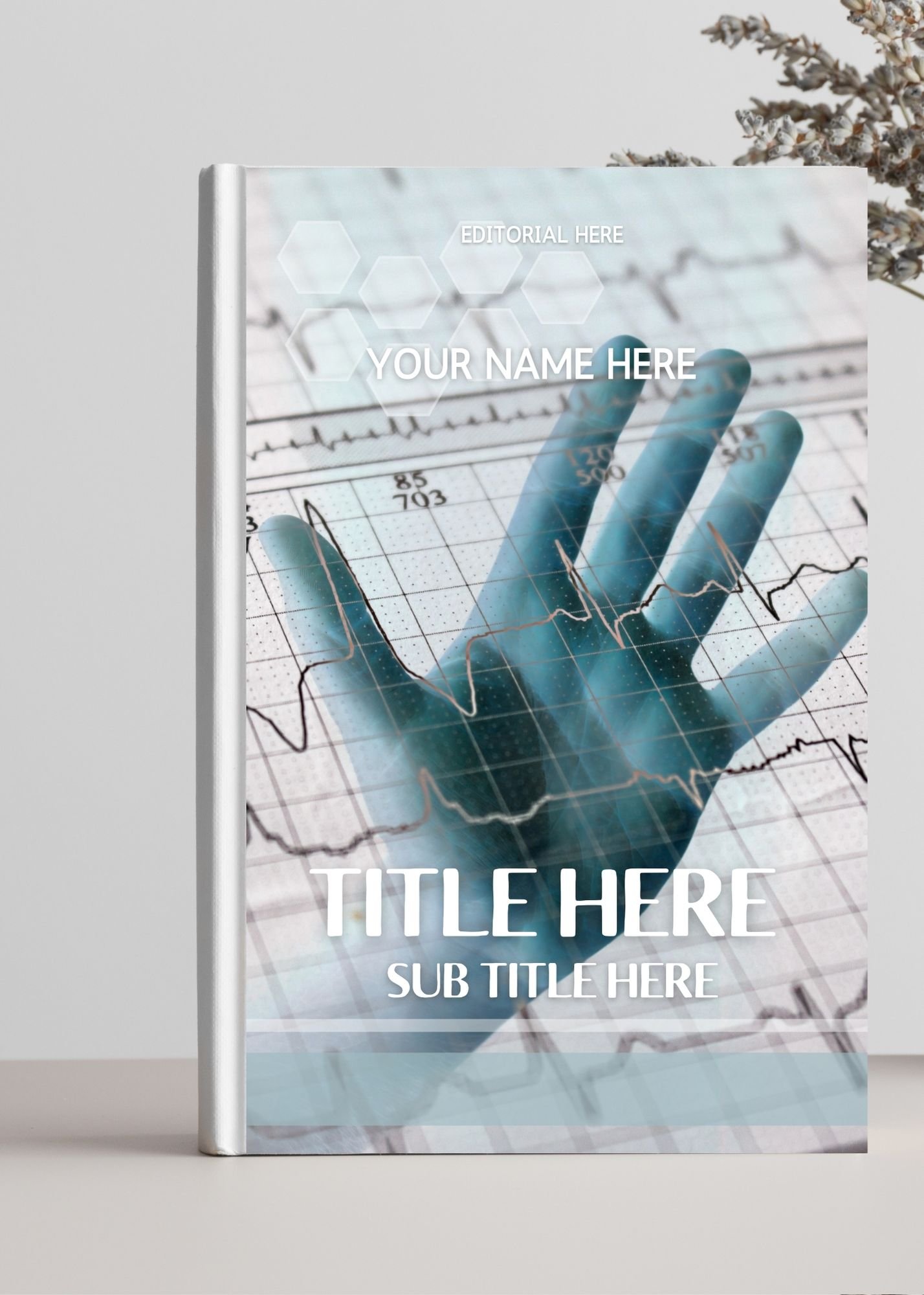 Cover book image. Hand on electrocardiogram hospital book cover., Cover background image ebooks printable books cover. Cover book image hand hospital medicine.