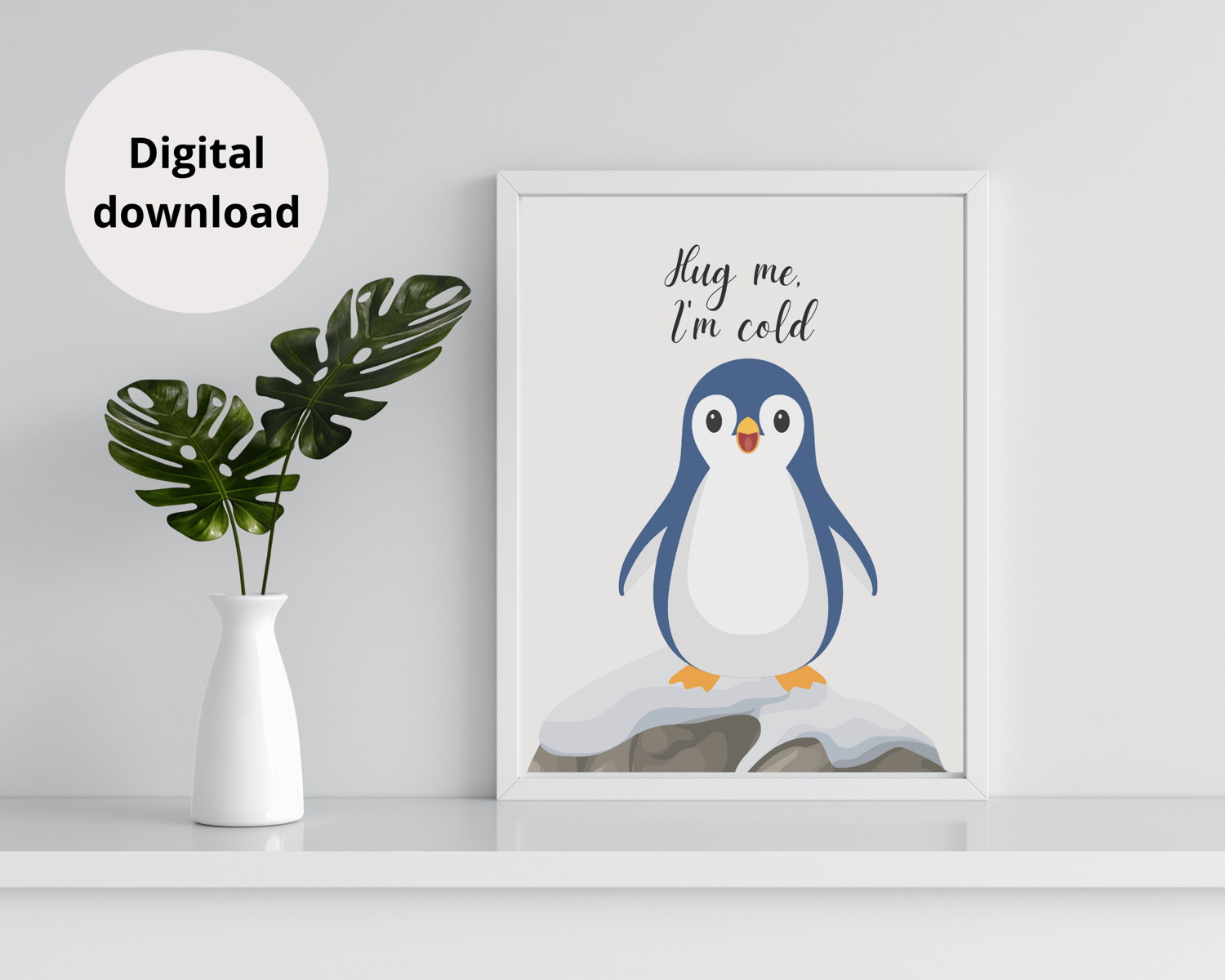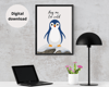 Penguin Wall Art Print, Cute Penguin Print, Animal Print, Kids Room Decor, Best Seller Printable Nursery Decor, Wall art