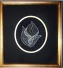 Elegant and modern, this striking calla lily is stitched on black fabric with soft tonal threads. It’s a small design—but a powerful exercise in contrast, stitch weight, and flow.