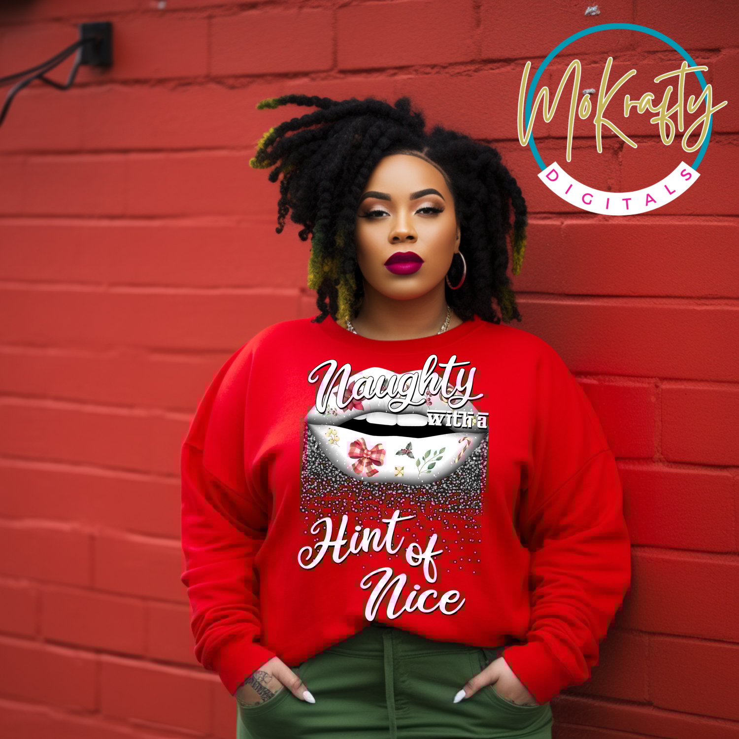 Bring some glam + attitude to your holiday merch with this Naughty With a Hint of Nice Christmas Lips Bundle!