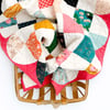 - Uses beginner-friendly curved piecing and traditional patchwork