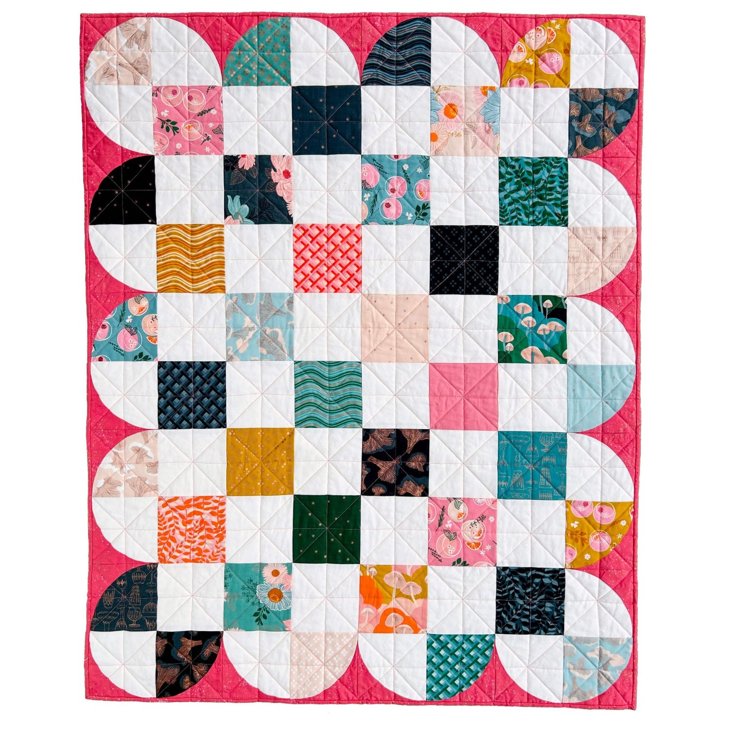Dress up a simple checkerboard style patchwork quilt with a few pretty curves! Adorn is a fun, approachable quilt pattern that turns classic patchwork into something just a little bit special—without adding stress or complexity.