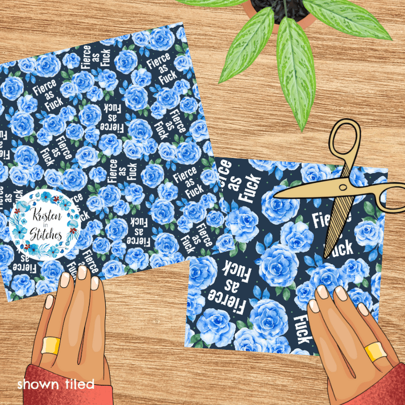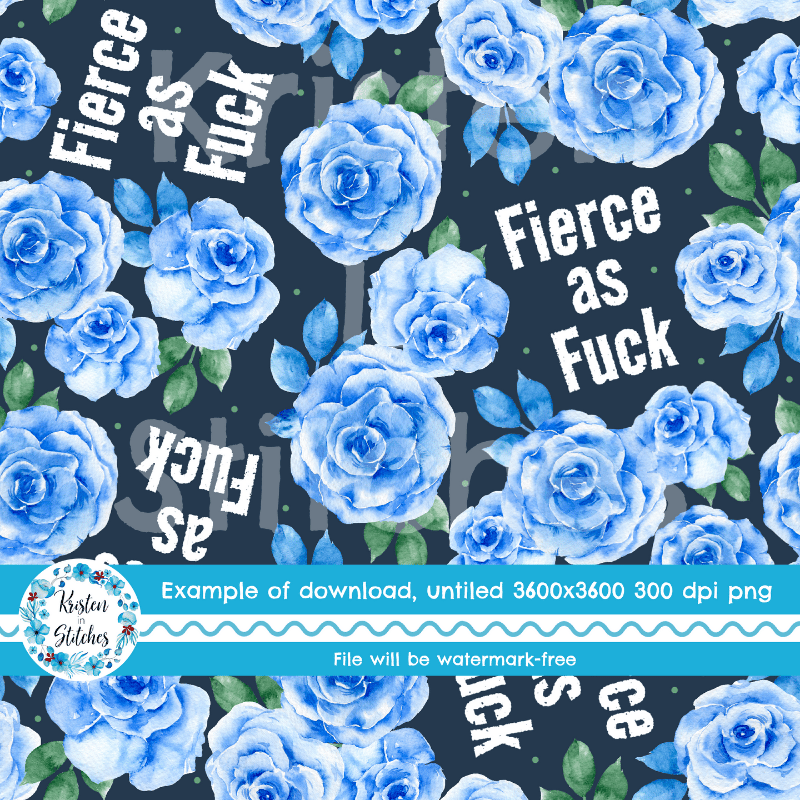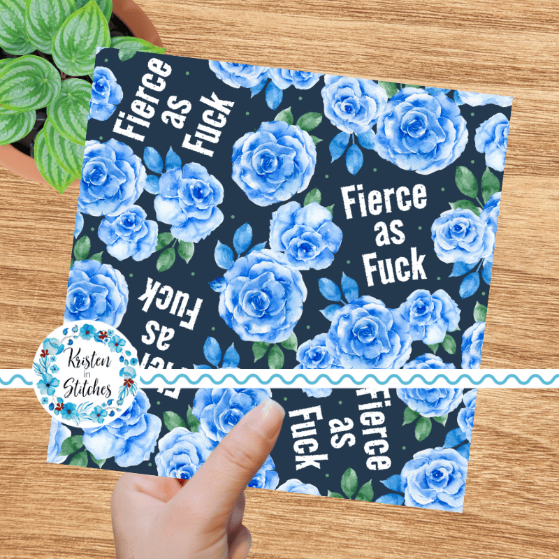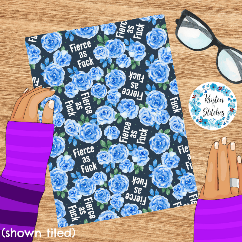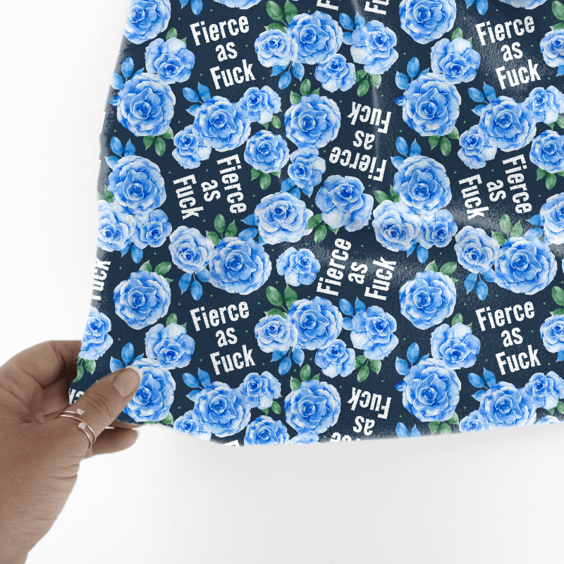 Fierce as Fuck sweary floral pattern with blue flowers.