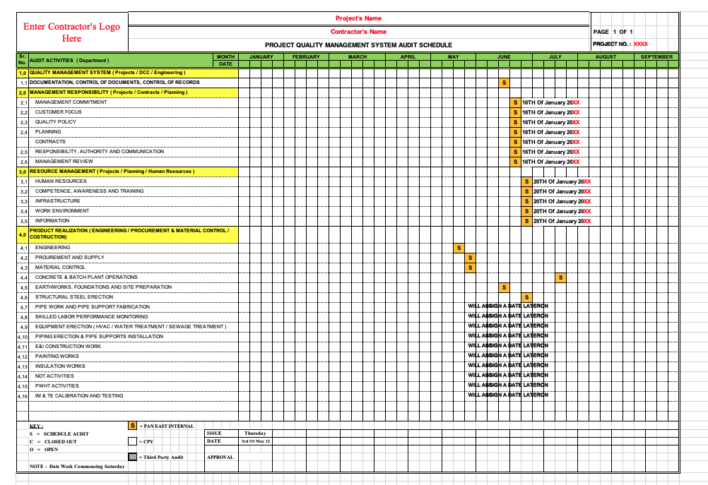 - Quality System Audit Schedule