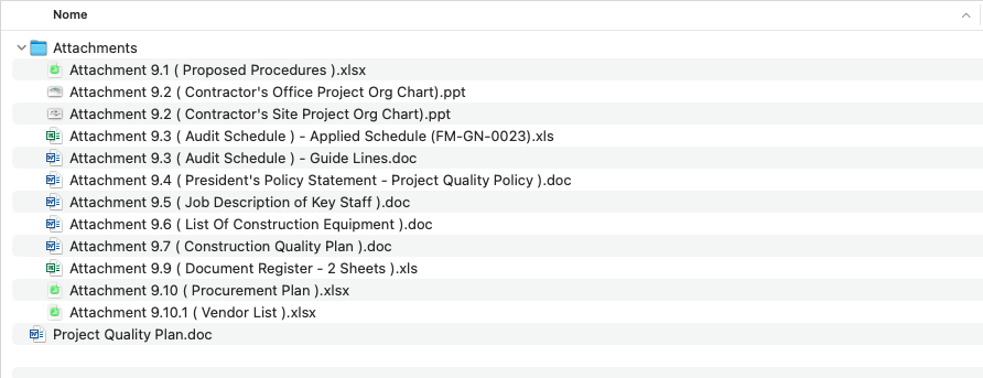 This PQP template for construction include 10 attachments as follows: