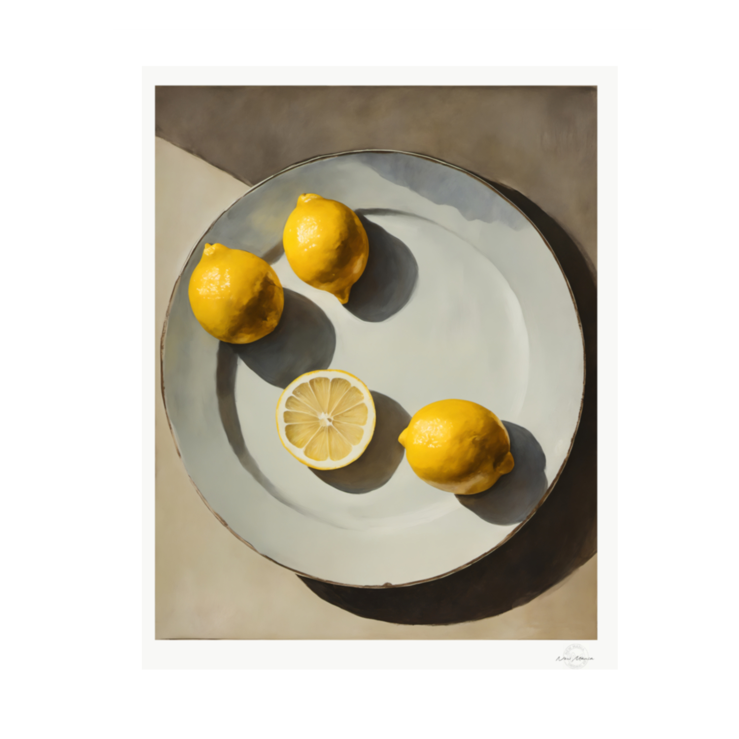 Download a minimal lemon still life printable inspired by Mediterranean light and calm interiors.