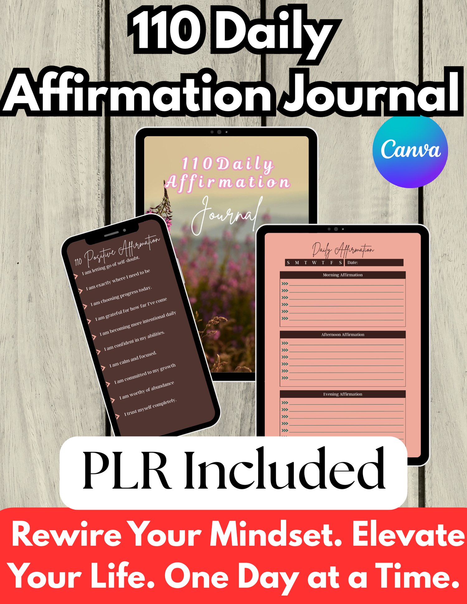 110 Daily Affirmation Journal (PLR) Included