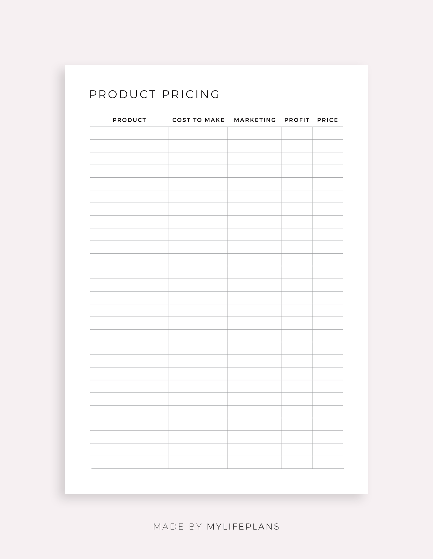 This is a printable product pricing template — just download, print, and start using it right away.