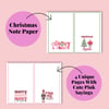 8 Printable Pink Christmas Note Cards | 8 Blank Pink Christmas Note Papers | Pink Christmas Stationery