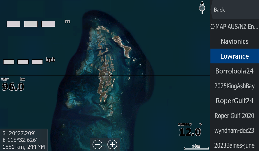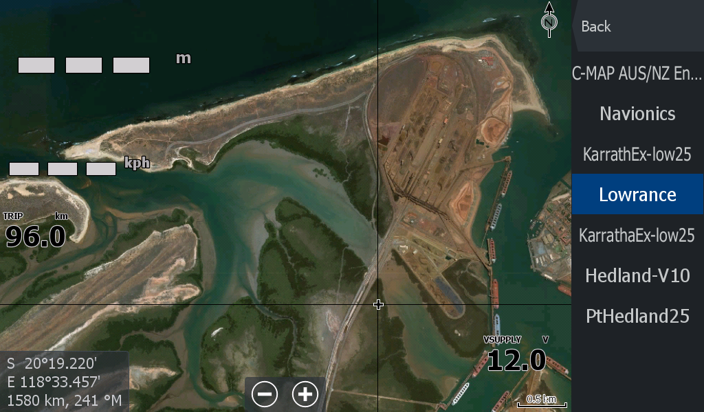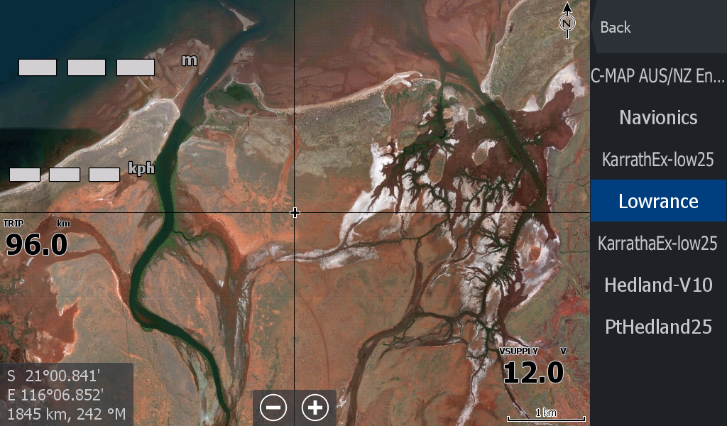 This Exmouth - Pardoo mapping is primarily to show you where you are in an "unchartered" creek or river system that is not covered by Navionics or C-Map etc.