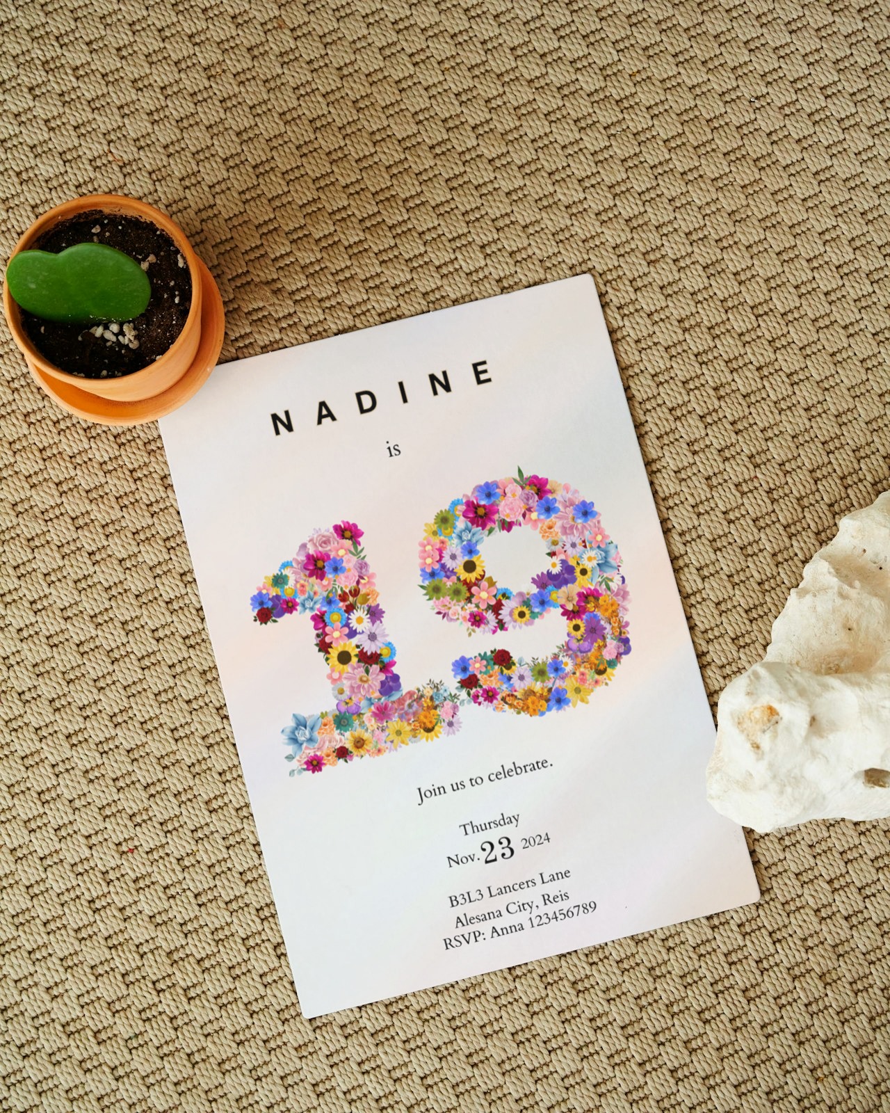 Make her birthday unforgettable with this beautifully designed Floral Number Birthday Invitation Template. Featuring a stunning wildflower-filled “19” design, this invitation is perfect for a 19th birthday celebration, brunch, dinner party, or intimate gathering.