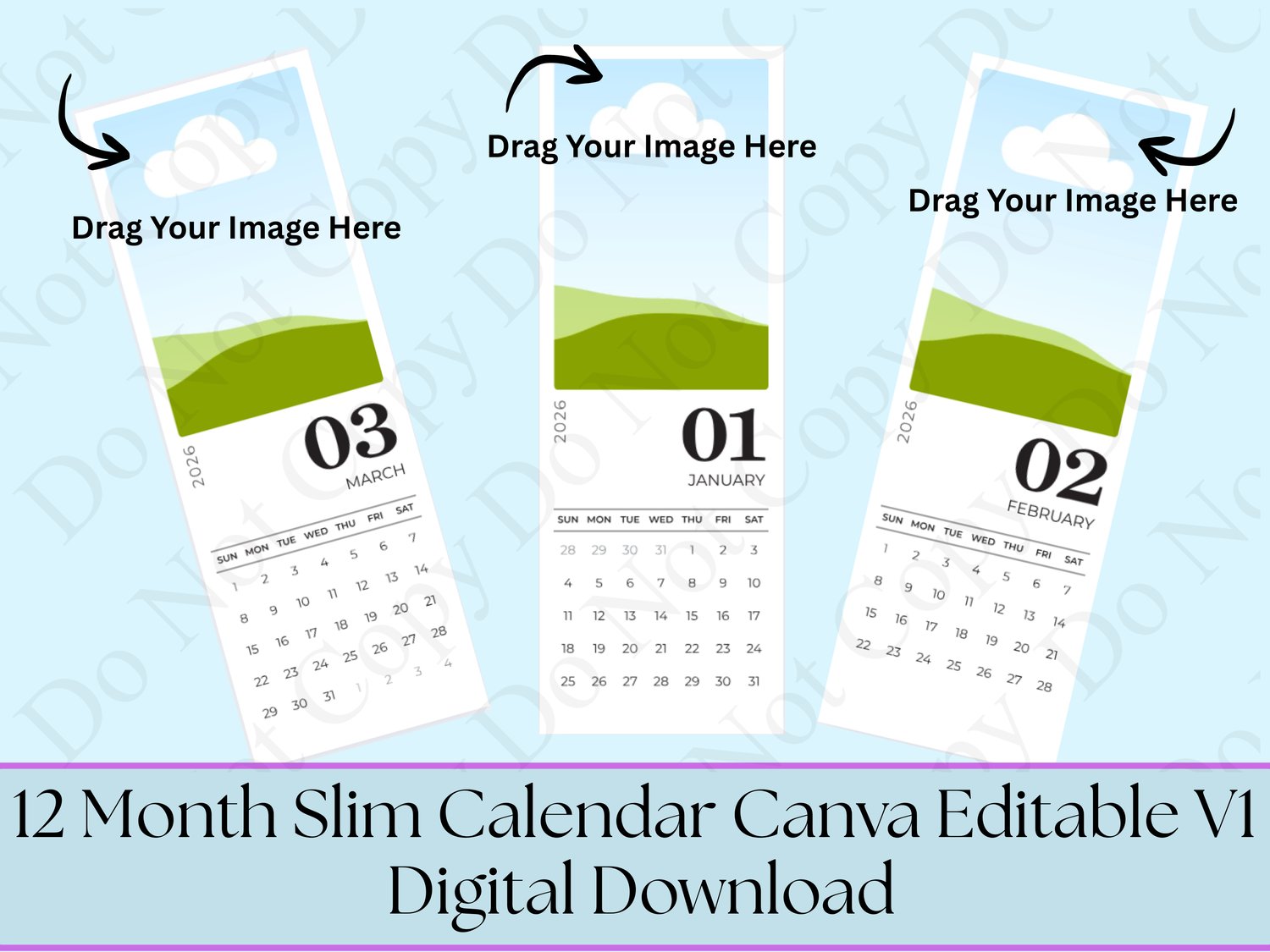 12-Month Slim Calendar – Canva Editable Template (V1)