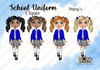 Instant digital download of our Cute School Girl in Royal Blue Uniform and Pigtails PNG (36 PNG’s included one)