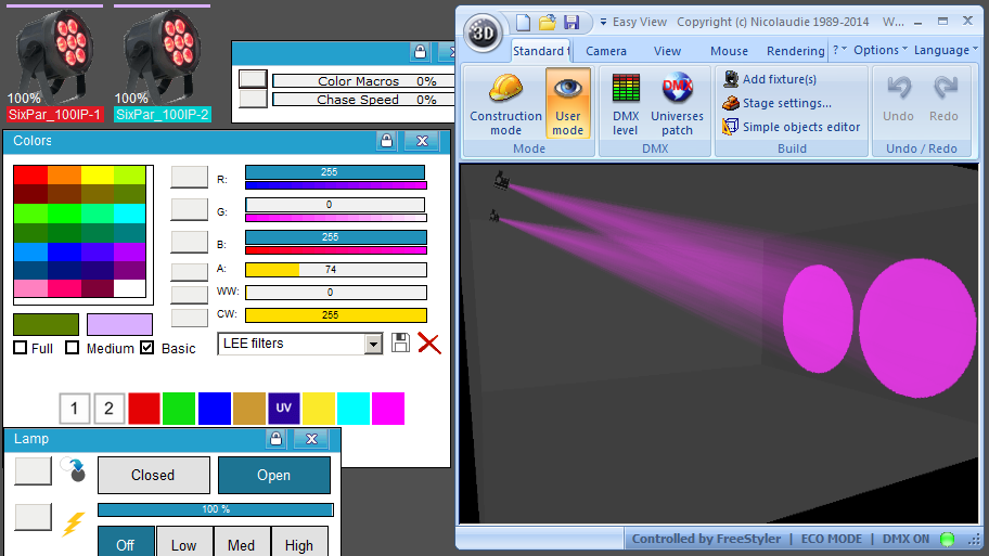 Esta Librería SSL2 está optimizada para trabajar con Magic 3d Easy View. Es decir para ver una representación 3D de las secuencias que estemos realizando con Freestyler, QLC+ o cualquier otro soft que se conecte con Magic 3d.