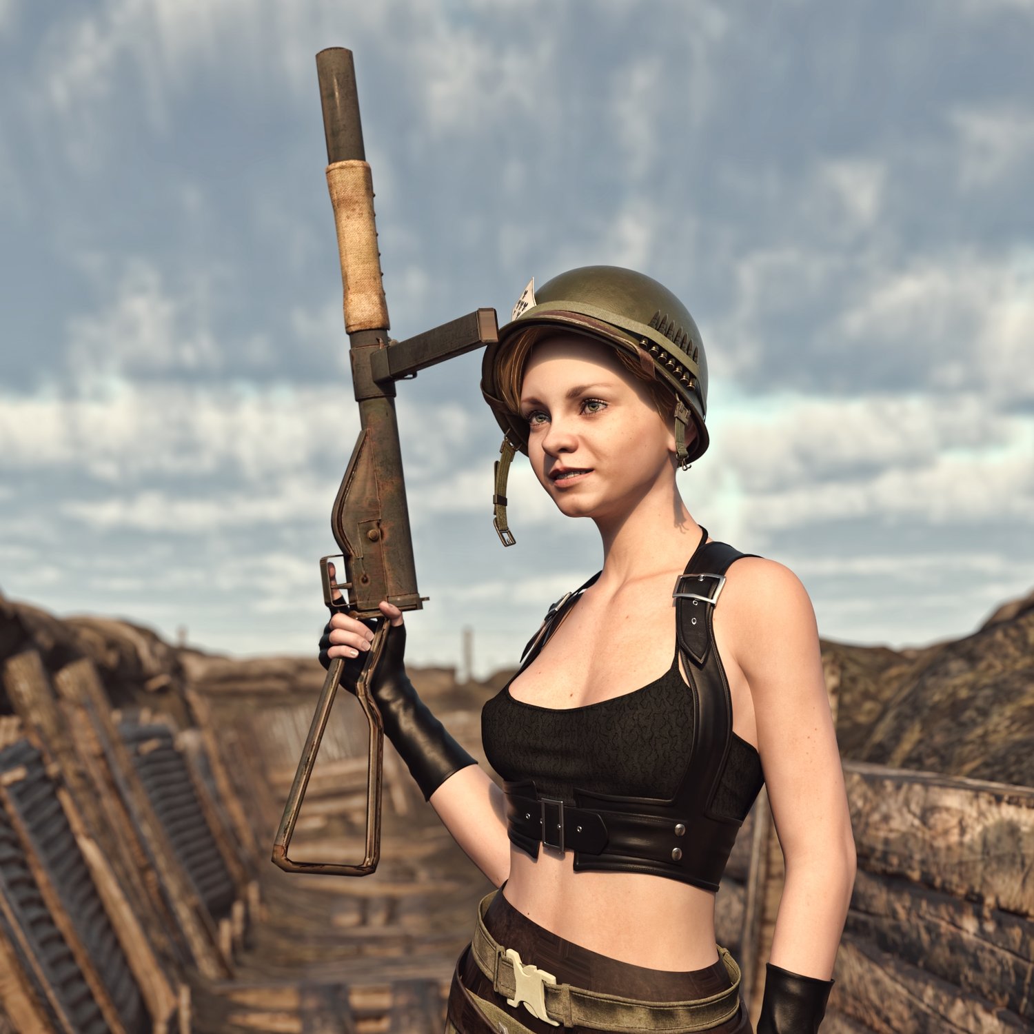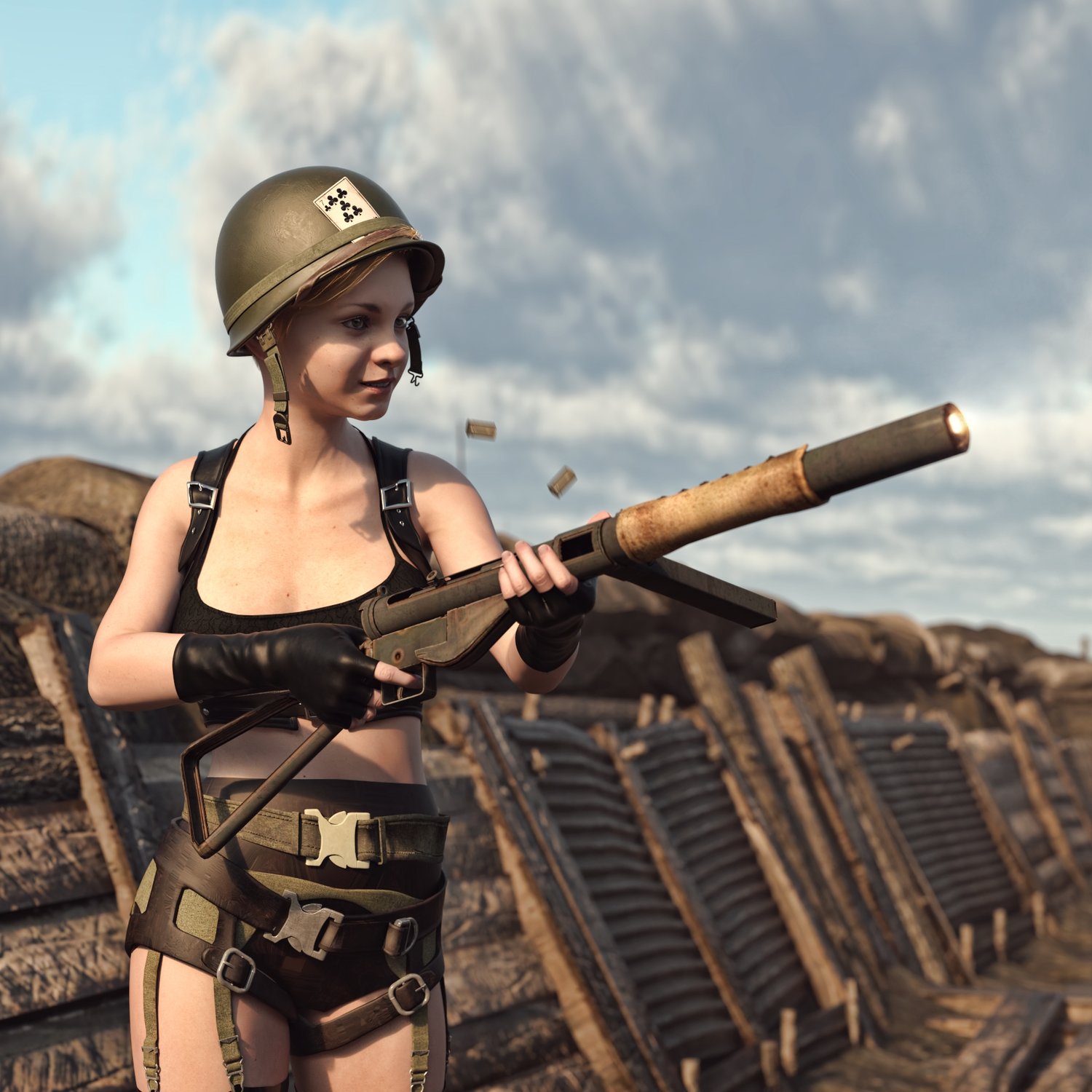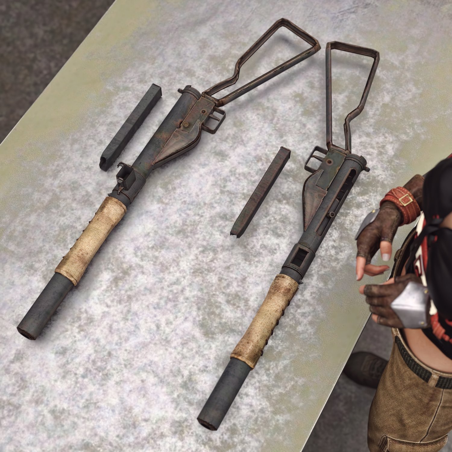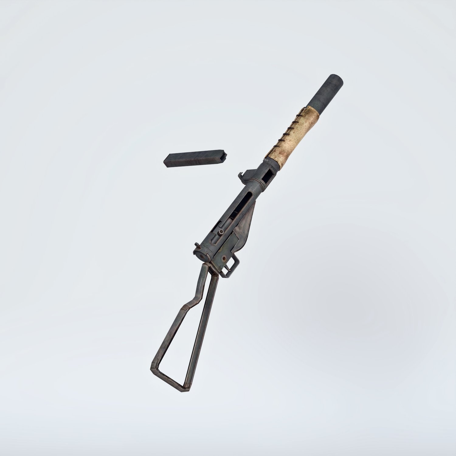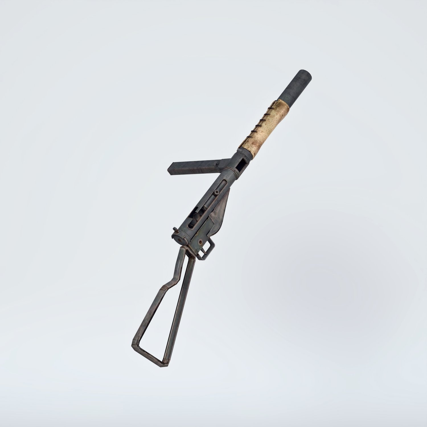One of the first submachine guns made en masse, also one of the cheapest. Developed during the WW2 to supply a cheap pistol caliber automatic weapon for allies' soldiers. Simple, cheap, but effective. This modification was developed for special forces units for covert operations behind enemy lines, when silence is a key. The prop is rigged and converted for use with DAZ. Trigger, mag bolt etc also rigged for more realistic pictures.