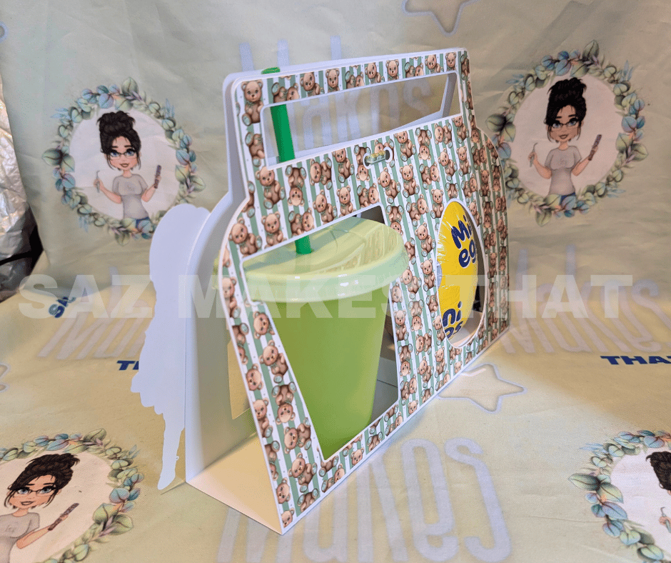 the file fits 1 small easter egg and 1 16oz cold cup that you can personalise with images and text for print then cut or just cut from plain or patterned card.