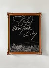 New York City— A modern black background frames a line-drawn slice of the New York City skyline, with the words “New York City” in bold lettering. Moody, minimal, and totally metropolitan.