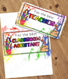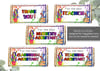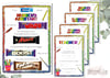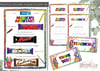 Chocolate wrappers size to: 15.5 x 21.5cm - designed for 110g galaxy bars, but can be resized as needed.