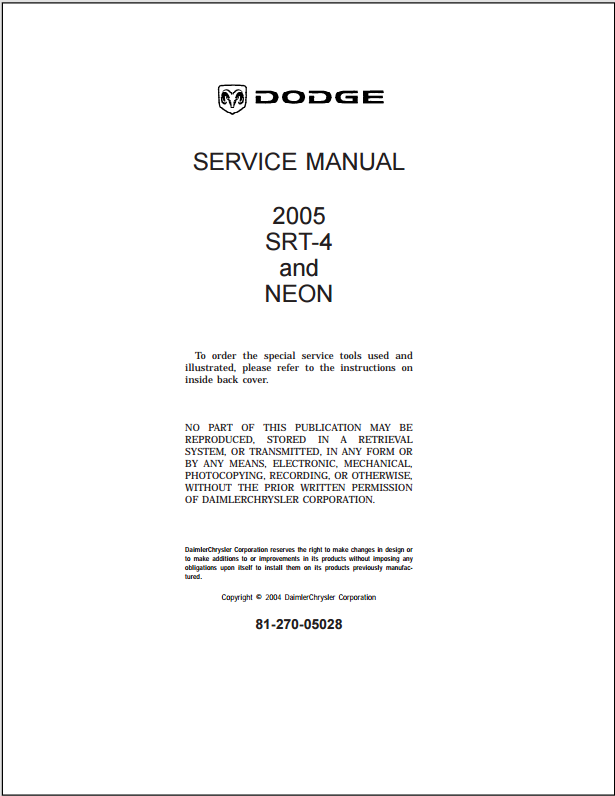 2005 Dodge SRT-4 Neon Service Manual