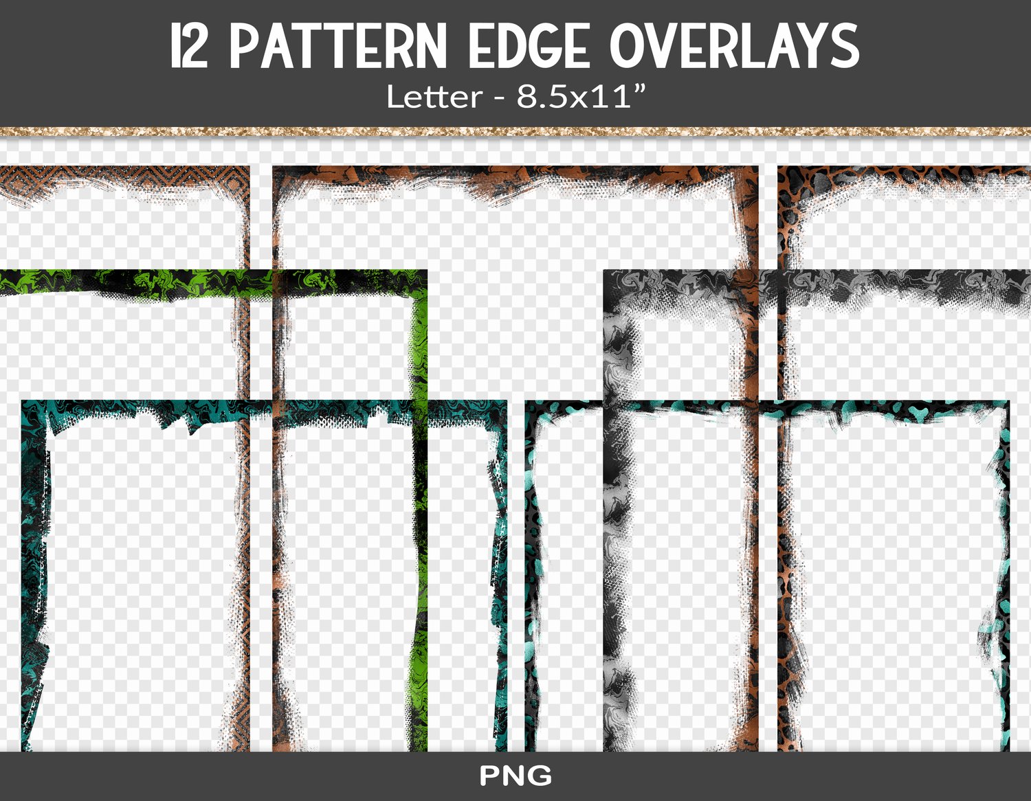 12 Pattern grunge frame overlays, PNG (RY124)