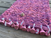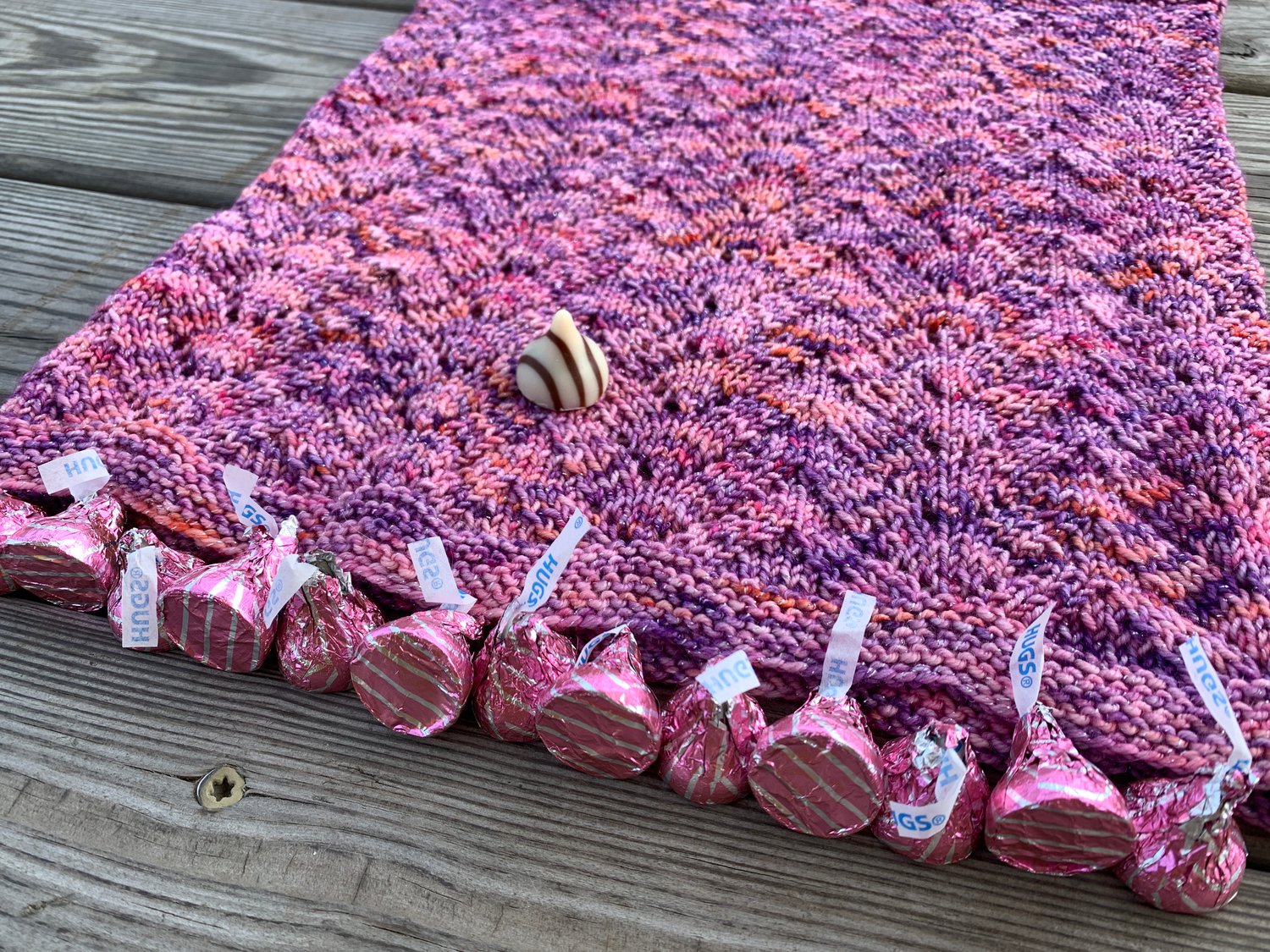 Every Easter, my Grandy would make up little plastic easter baskets for her grandchildren and put them at our places on the table. The baskets were filled with Hershey’s Kisses, jellybeans, and a Susan B. Anthony dollar. There was big excitement one year when Hershey’s Hugs debuted and were added to our baskets! The curves in this lace pattern remind me of these wonderful childhood treats.