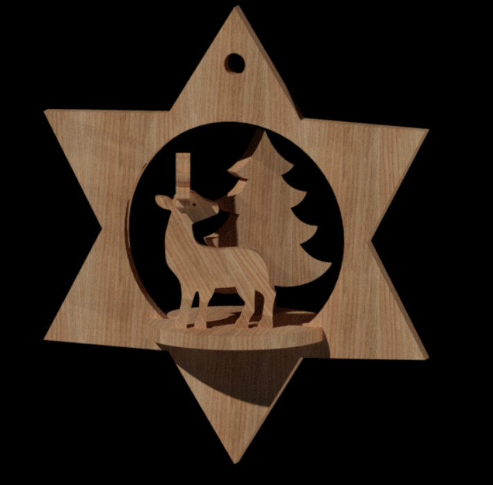 This digital download includes a 10 cm (≈4 in) Christmas star ornament design featuring a reindeer and a pine tree – perfect for laser cutting, CNC routing, or scroll saw projects. The clean and precise lines make it easy to cut and assemble.