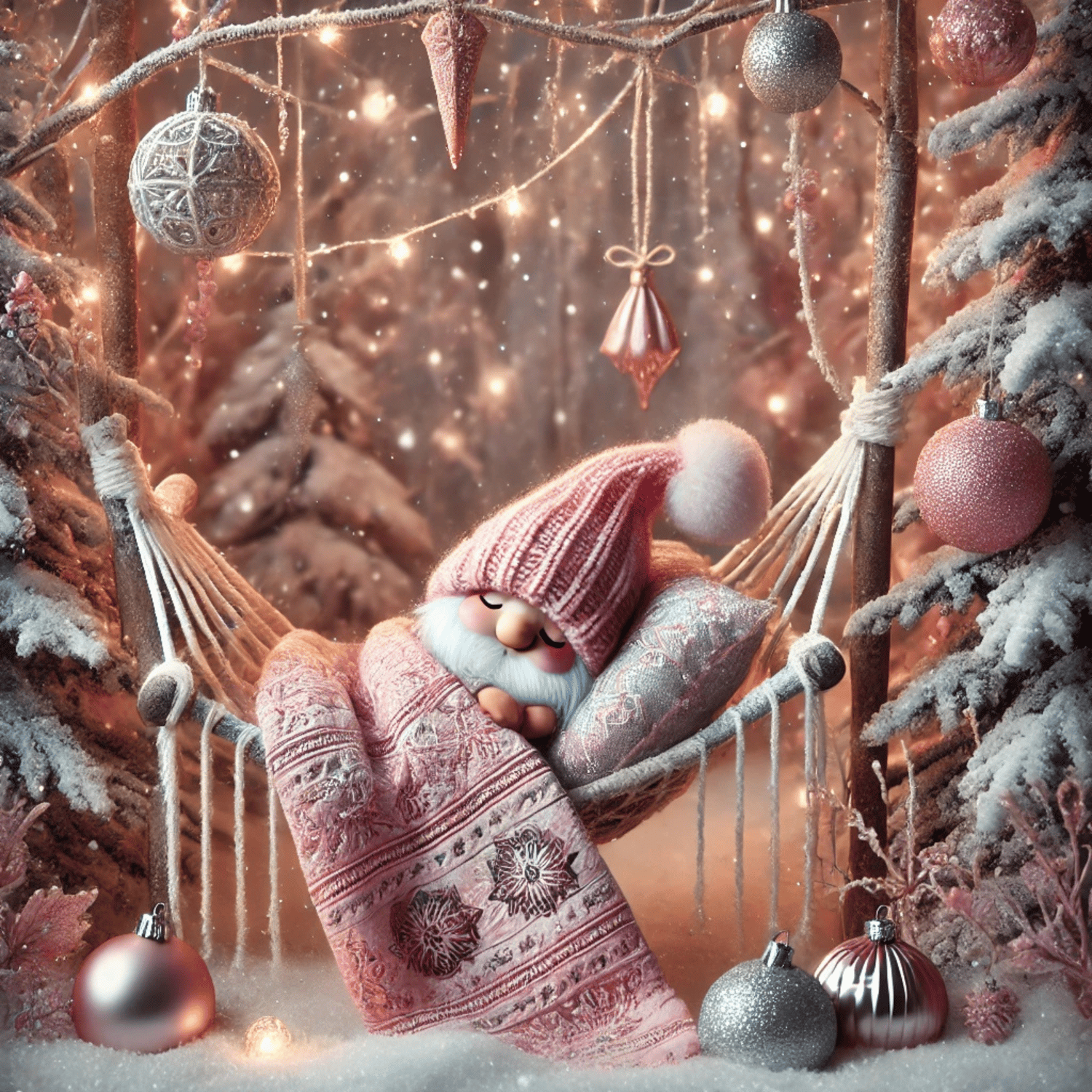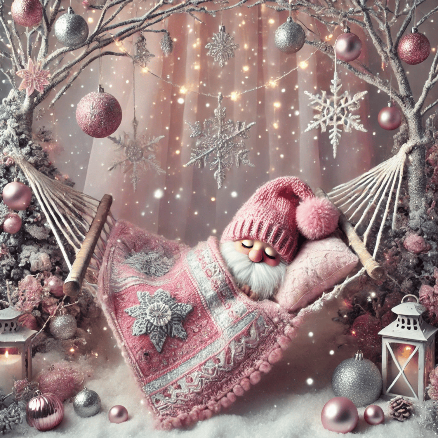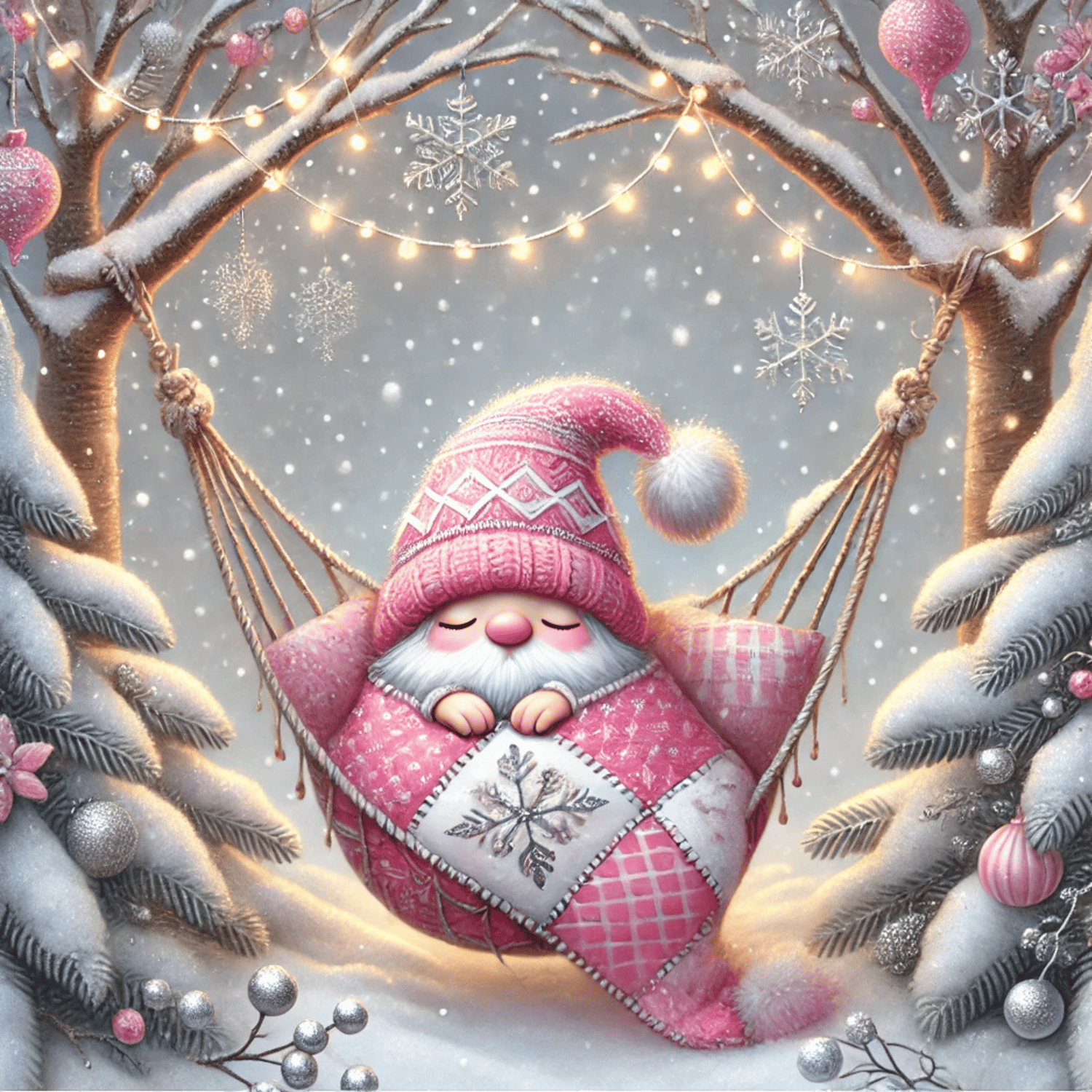 Cozy up with this dreamy Pink Gnome Christmas Hammock Bundle! 🎀 These soft, pastel winter illustrations feature adorable gnomes snuggled in patchwork hammocks, surrounded by sparkling snow, fairy lights, and holiday ornaments. Perfect for adding a whimsical winter touch to your Christmas projects—from sublimation mugs to journal covers!