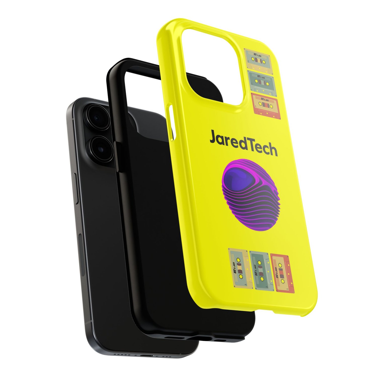 #yellowiphonecase, #retrocassettecase, #vibrantJaredTechdesign, #durablephonecase