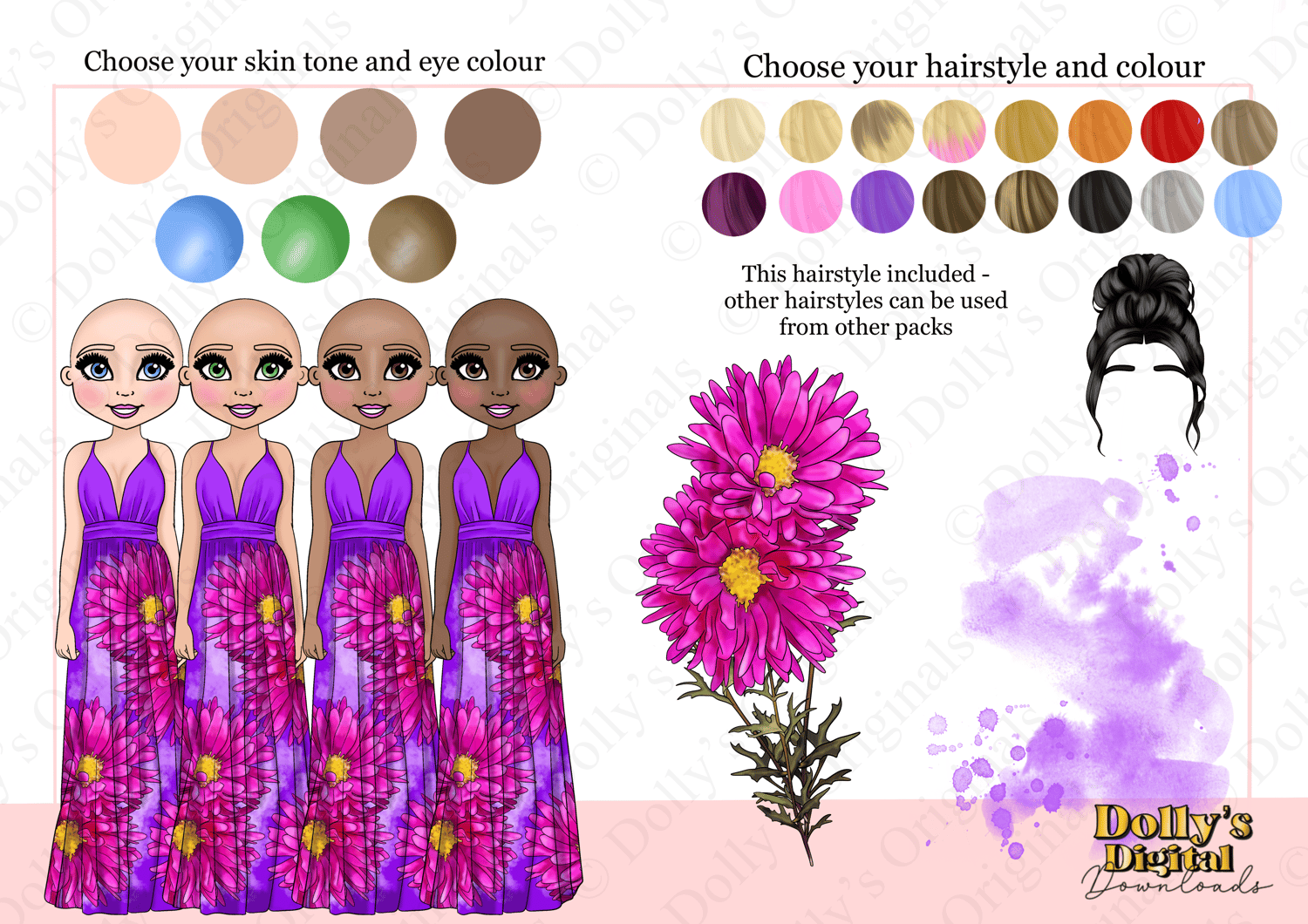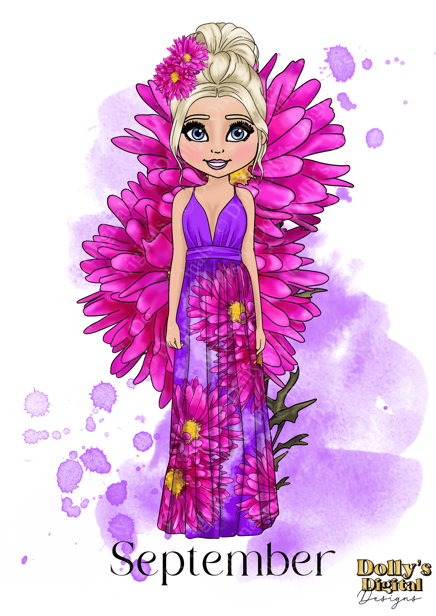 Instant digital download of our Birth Flower September Aster Doll Character Bundle PNG (34 PNG’s)