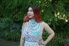 Another way to check your gauge is to work Part 1; the model was 11.5” (29.2cm) across the top edge and had a 5” (12.7cm) depth before blocking.