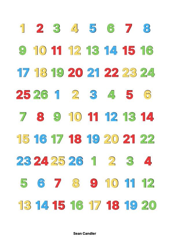 This tool builds directly on the basic two-page saccade format, but introduces a higher level of complexity through a randomised colour pattern layered over letters and numbers. The added colour dimension allows tasks to move beyond simple sequencing into rule-based visual processing and cognitive control .