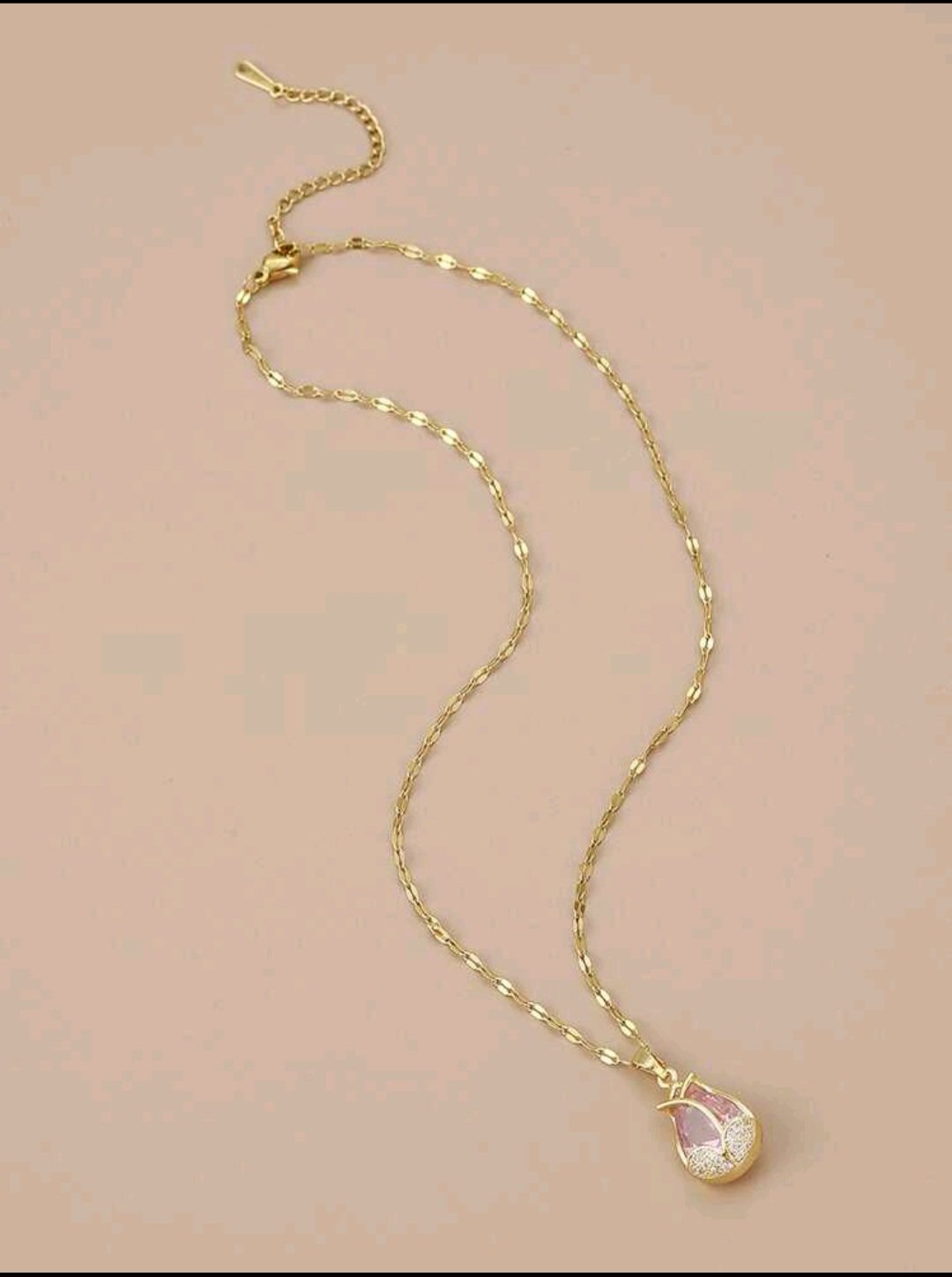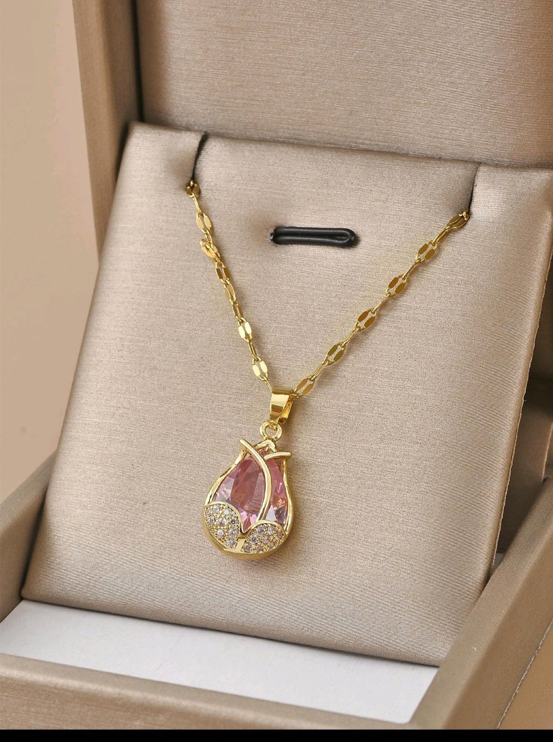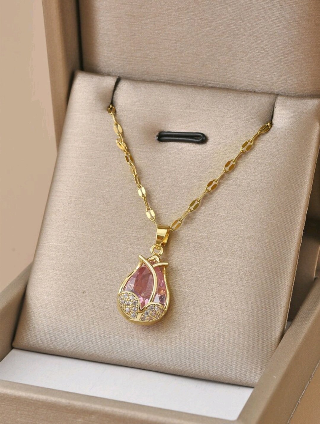 1pc Stainless Steel Tulip Decorated With Full Rhinestone Necklace For Women