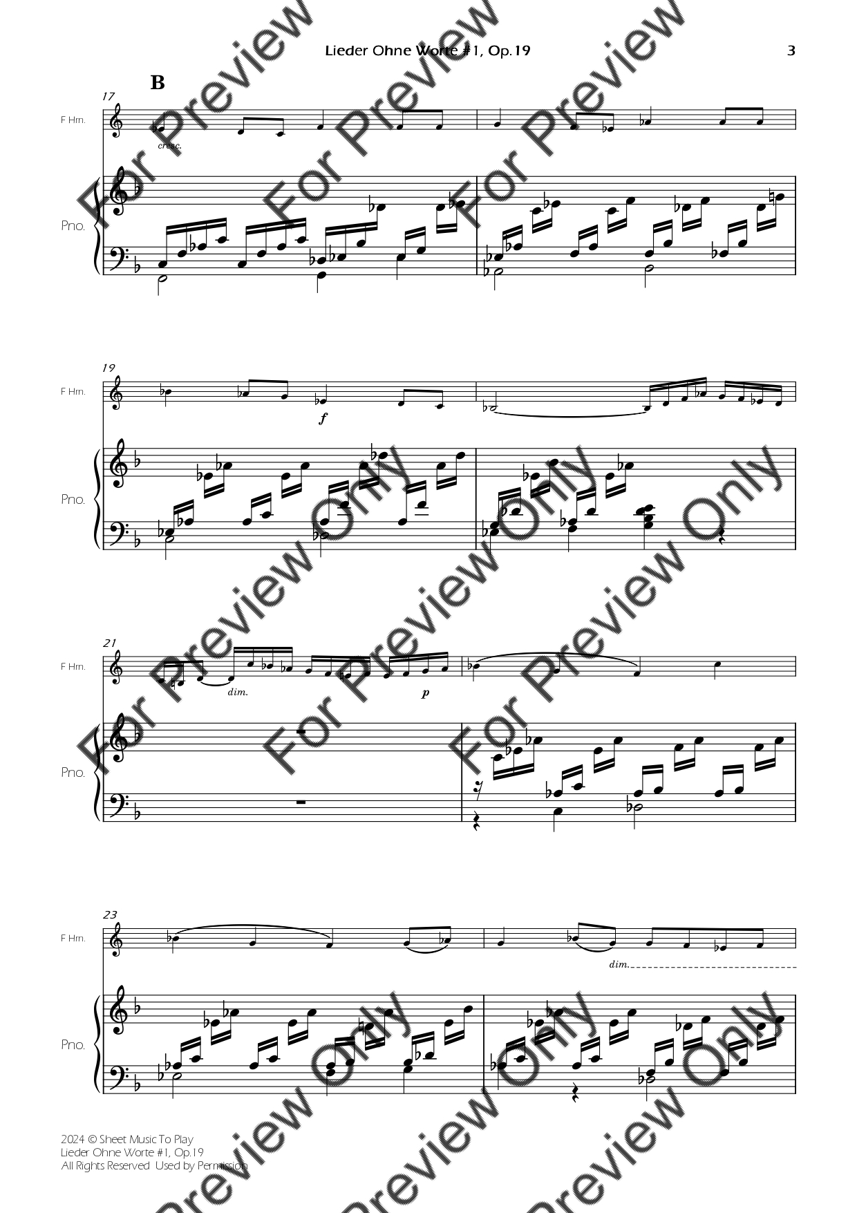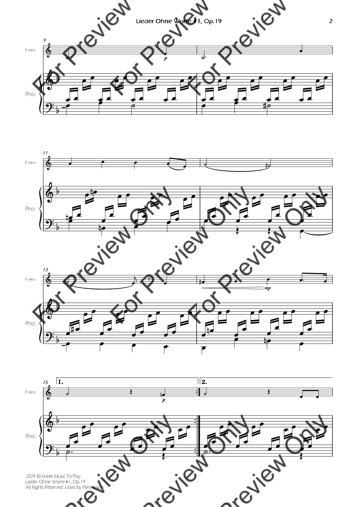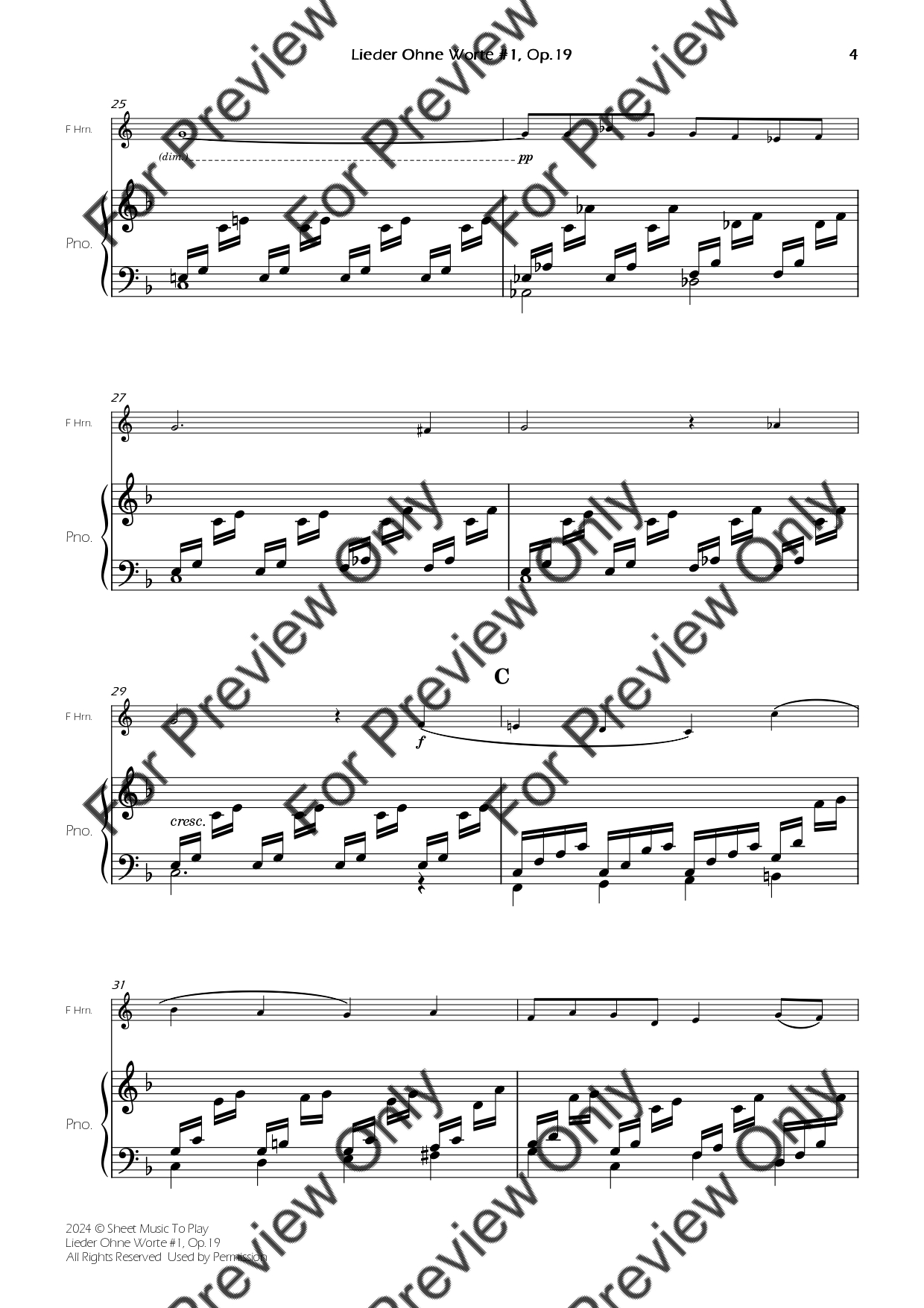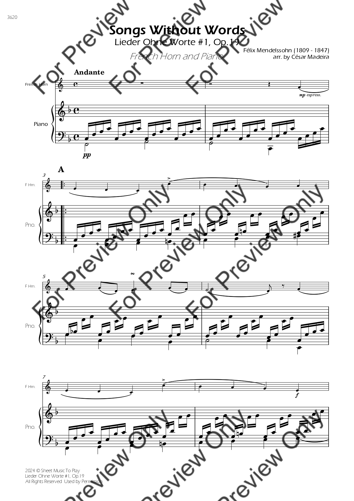 Songs Without Words No.1, Op.19 by Felix Mendelssohn. Arrangement for French Horn and Piano. With Full Score and Individual Parts. Have fun!